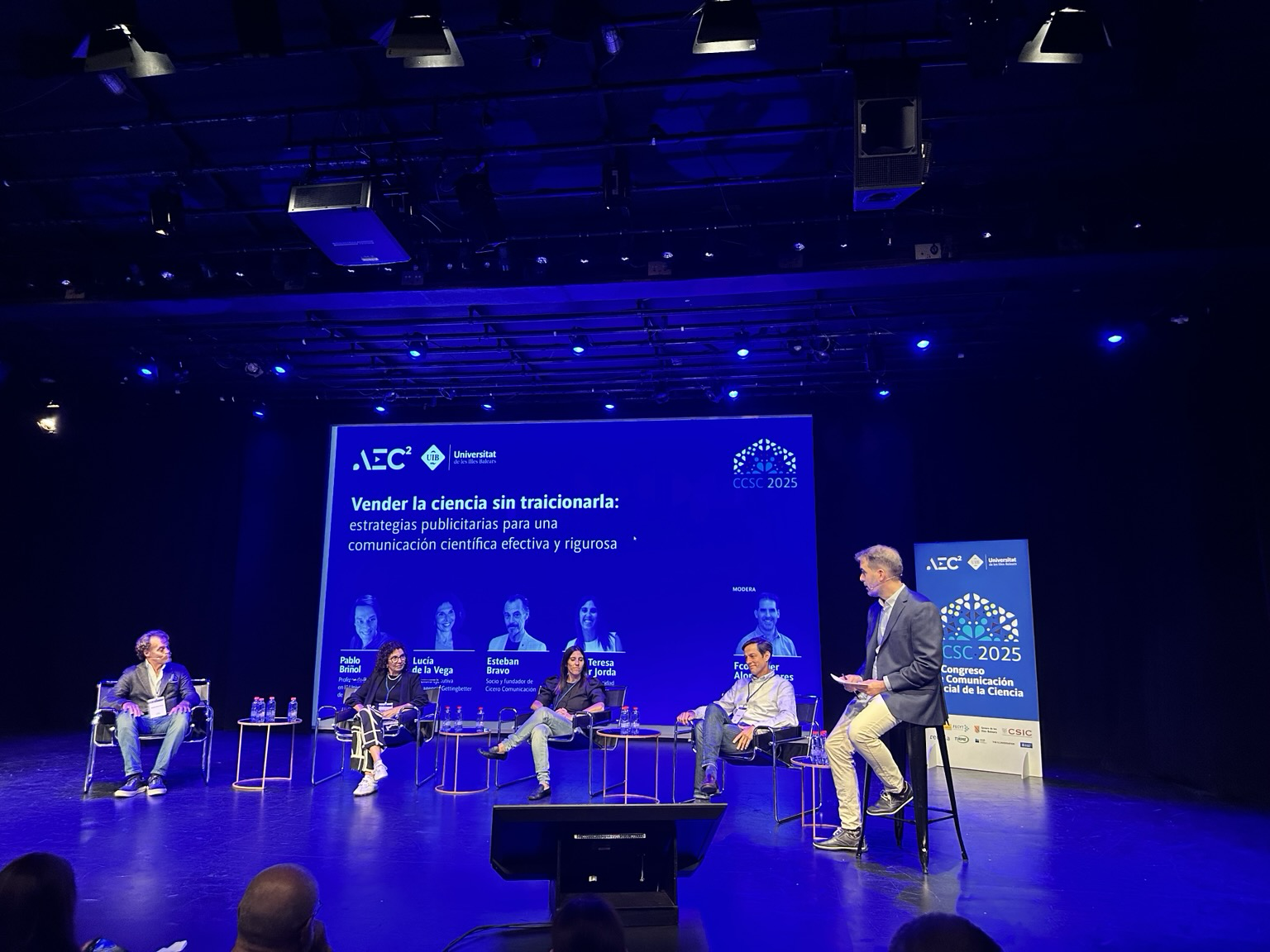 Tres momentos de la sesión matutina de #CCSC2025 . Todas llenas de reflexiones importantes para seguir comunicando ciencia. Y me llena de orgullo en especial que no dejemos a un lado la actualidad con ese trozo de sandía con la que demostrar la conciencia social de la #CIENCIA, hacia #freepalestine.