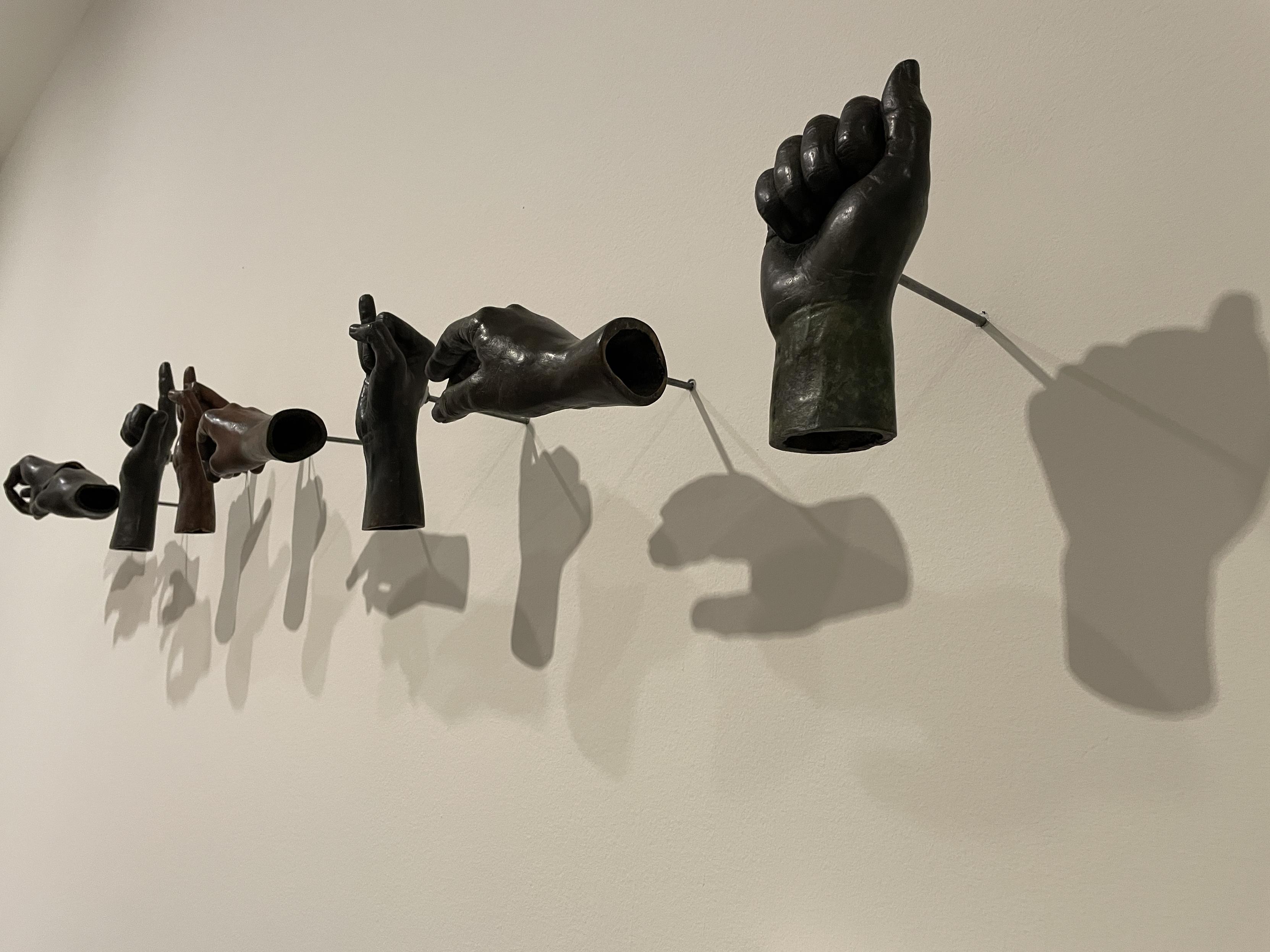 Not my own hand but intriguing hand shadow art from an exhibit in Boston that I found interesting -- this sculpture ("Abstinencia") is by Yoan Capote and is a political protest against speech censorship