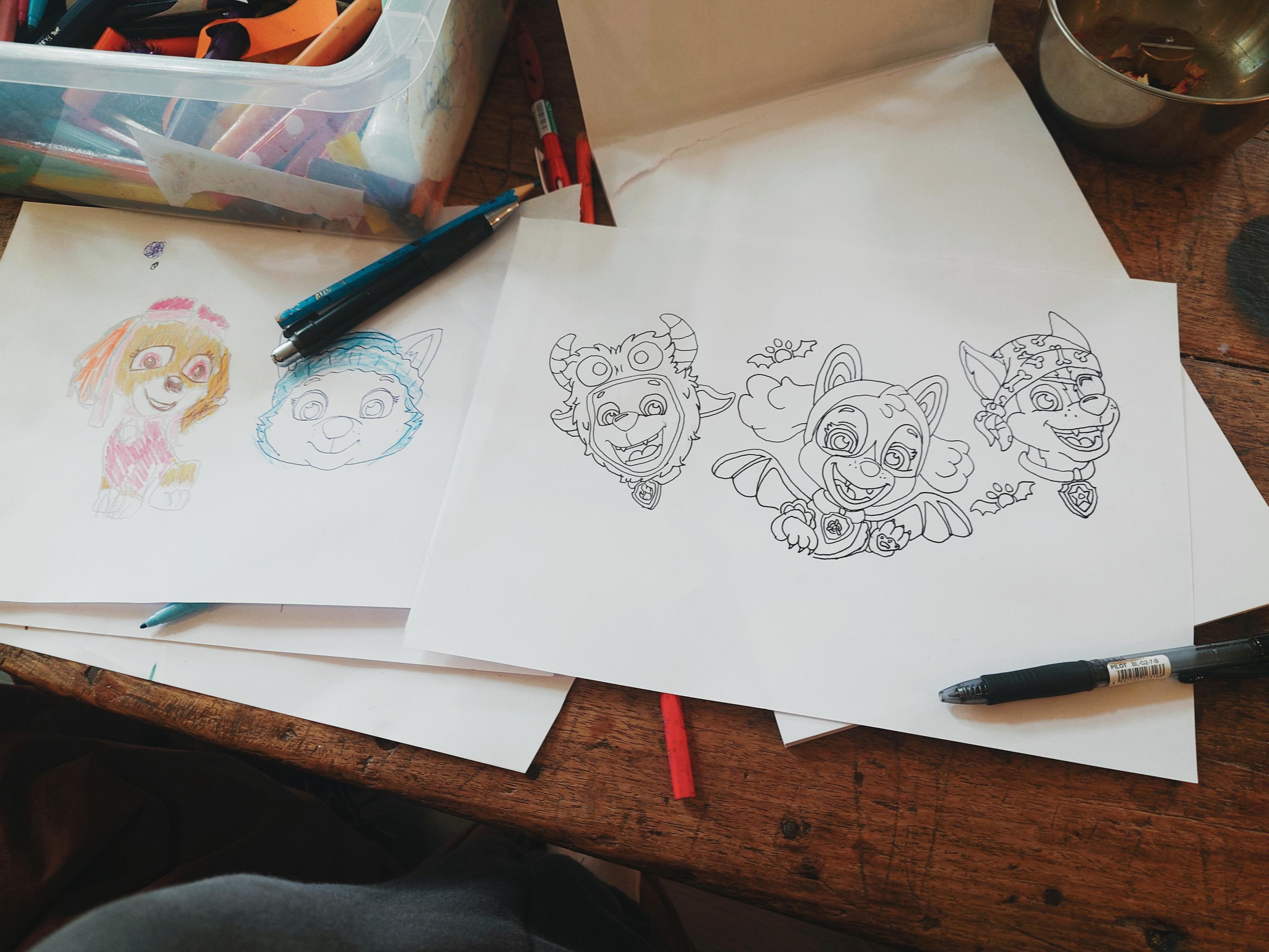 Sick kid Sunday. 🤒 So I'm sat drawing spooky Paw Patrol characters because the kiddo was upset she had no colouring pages left.