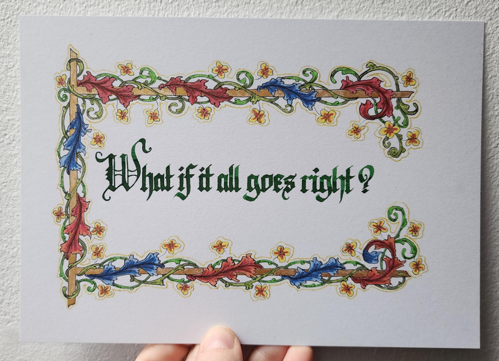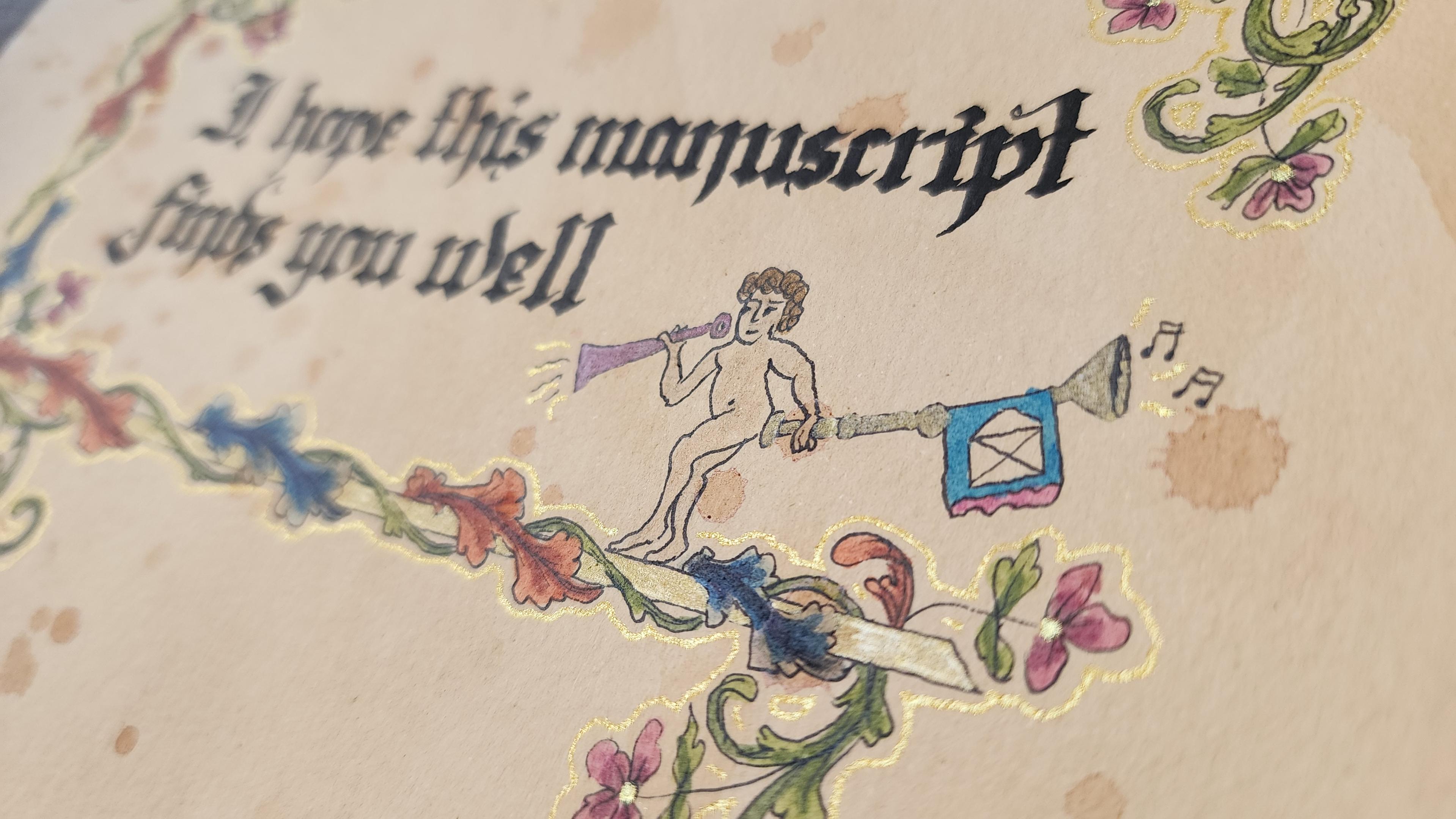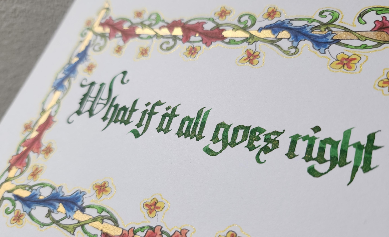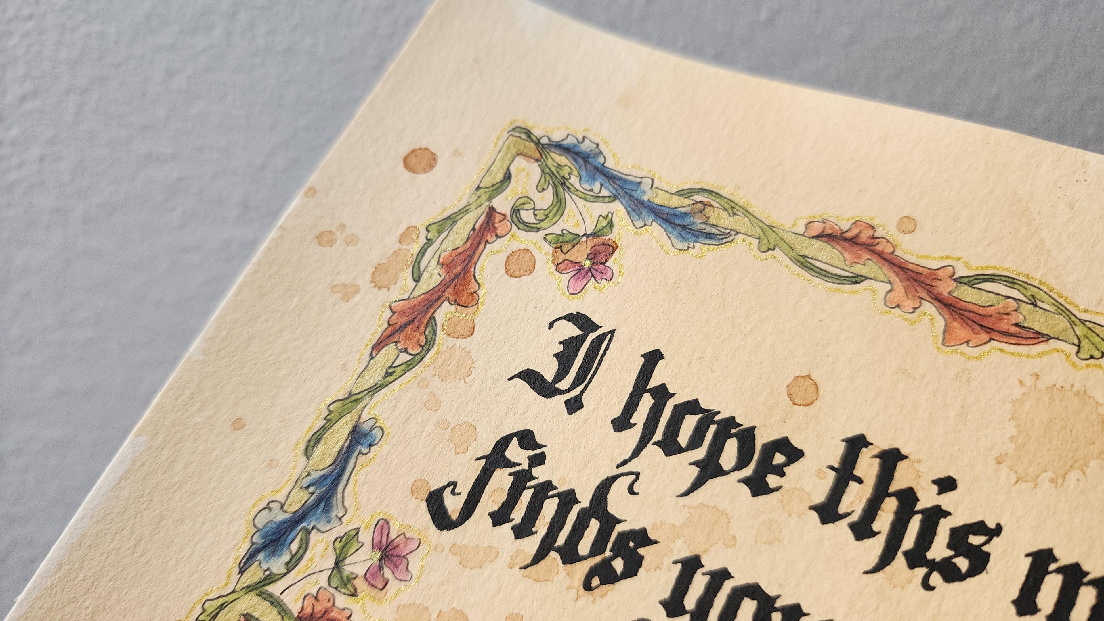 I've opened commissions on my Ko-Fi shop for a specific style of illuminated calligraphy: