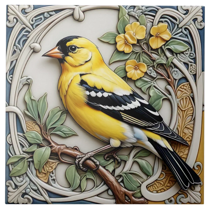 Robbi from Pennington, NJ just bought ten American Goldfinch - Art Nouveau style Ceramic Tiles from the Global Museum Store