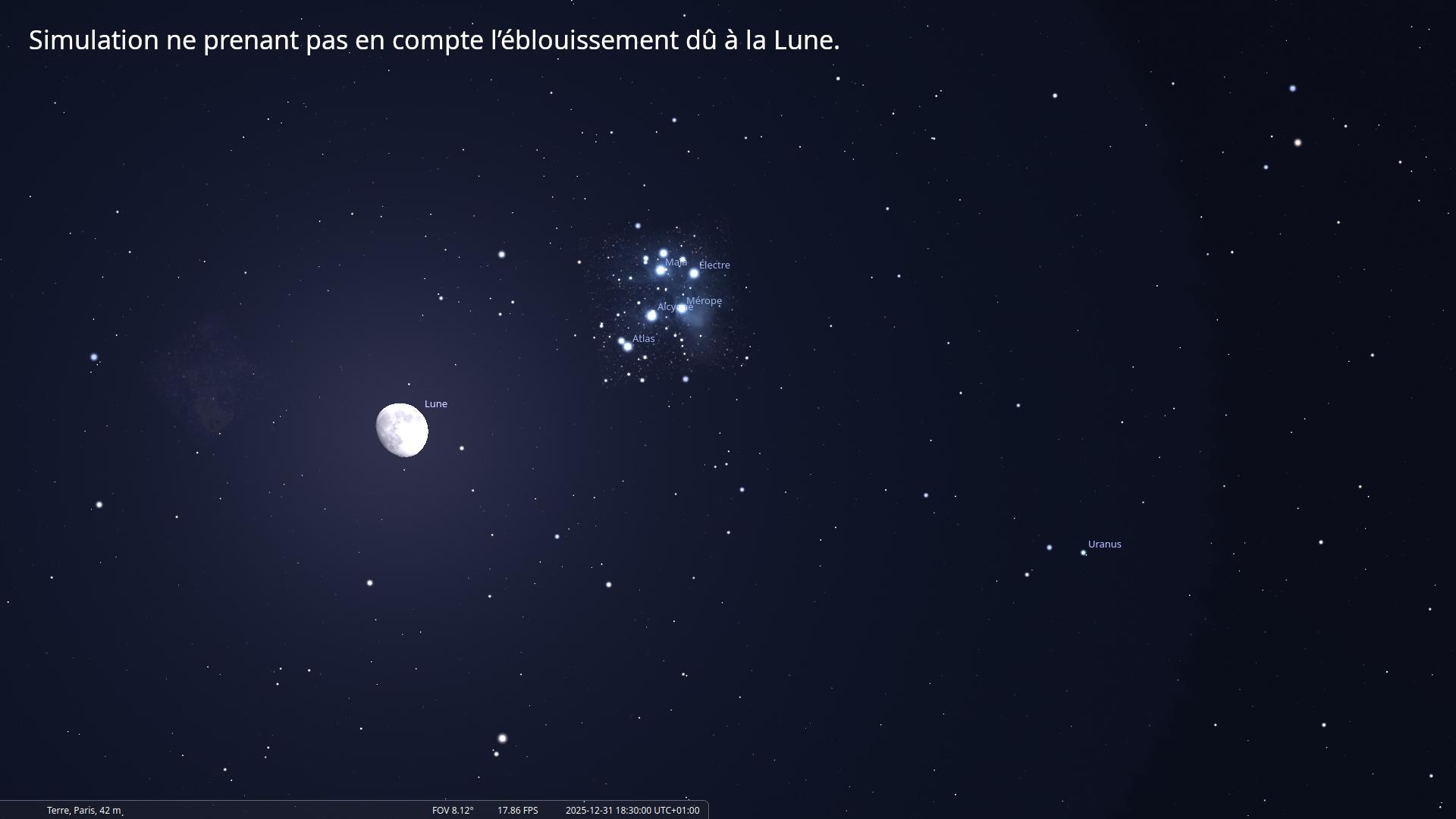 Détails : https://www.astro5000.com/Ephemerides/ephemerides_12_25.html#Lune-M45-2
