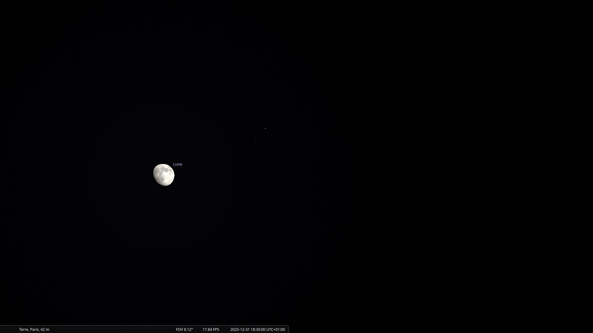 Pour le réveillon de ce soir il y aura une petite #conjonction entre la #Lune et les #Pléiades qui est un amas d'étoiles. Normalement visible sans instrument l'usage de jumelles sera recommandé. Pour la France métropolitaine il faudra observer des que le ciel sera sombre. Les Pléiades seront à droite et un peu en haut de la Lune. Pas loin se trouve aussi la planète #Uranus visible au télescope ou en photo longue pose.