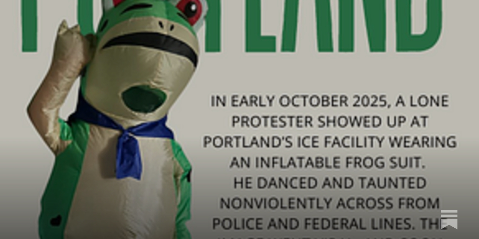 #MikeJohnson Called Us Hateful. Meet the #Portland #Frog. How dancing protesters proved love defeats hate and why millions #march #October18 https://substack.com/inbox/post/175921873 The costumes also serve practical purposes: They provide protection from #teargas and #pepperspray; They make it visually obvious there are no #weapons; They show the #protests are #peaceful; They make protesting feel accessible to people who are #scared; And most importantly, they refuse to let #Trump set the emotional tone.