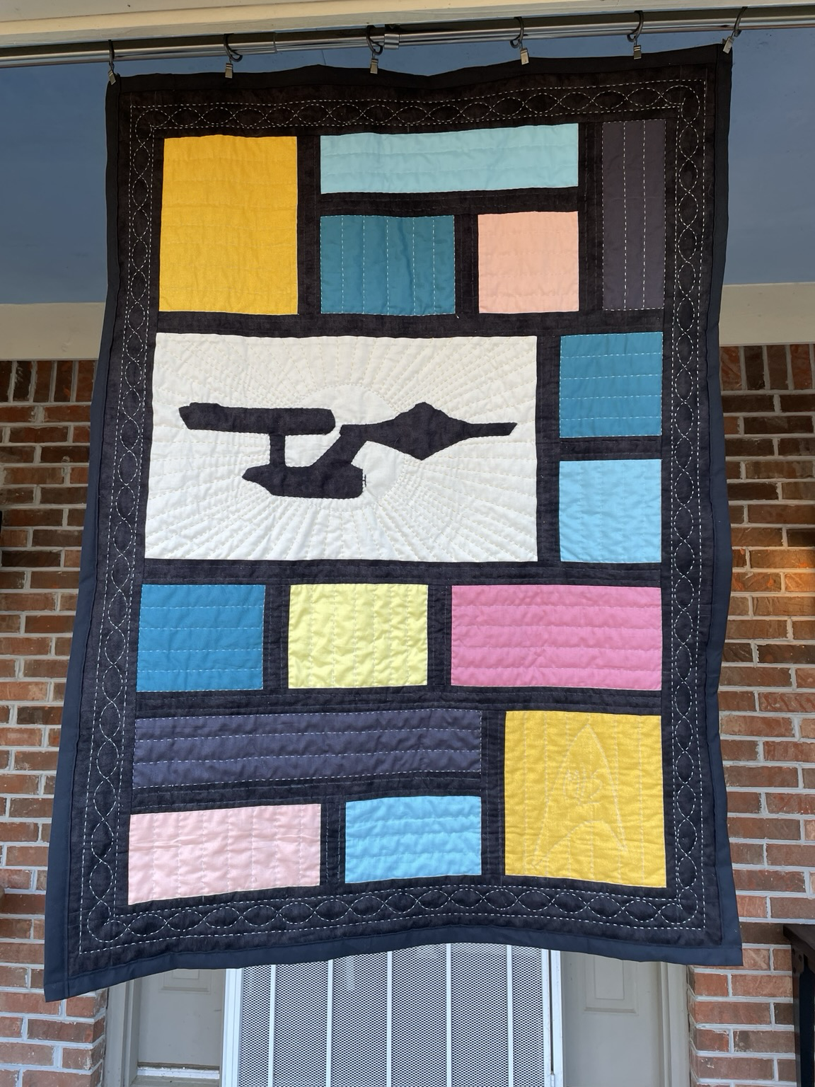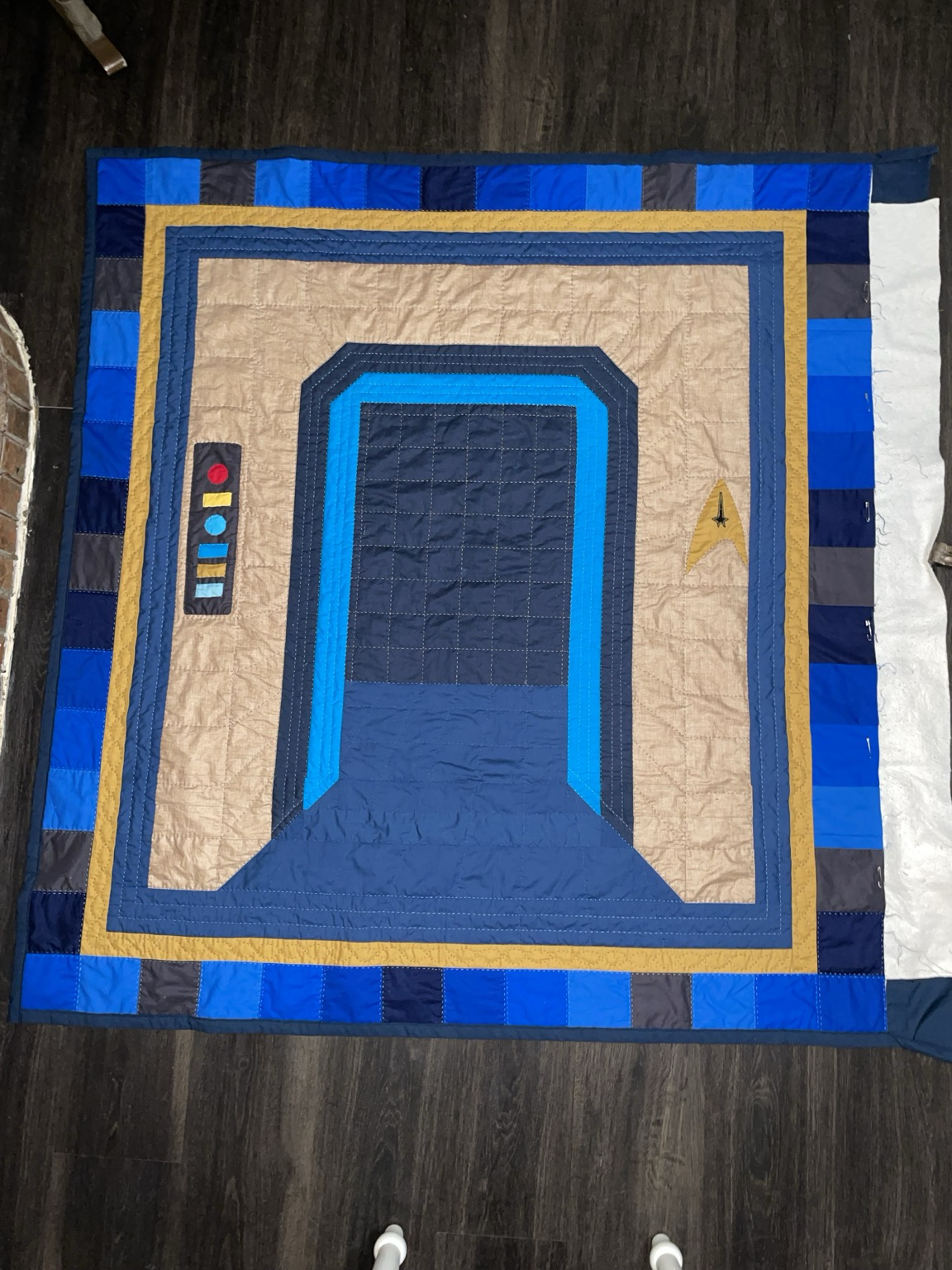 I finished the Star Trek baby quilt a little while ago. It turned out lovely. #StarTrek #quilted #babyquilt #handquilting #quilt