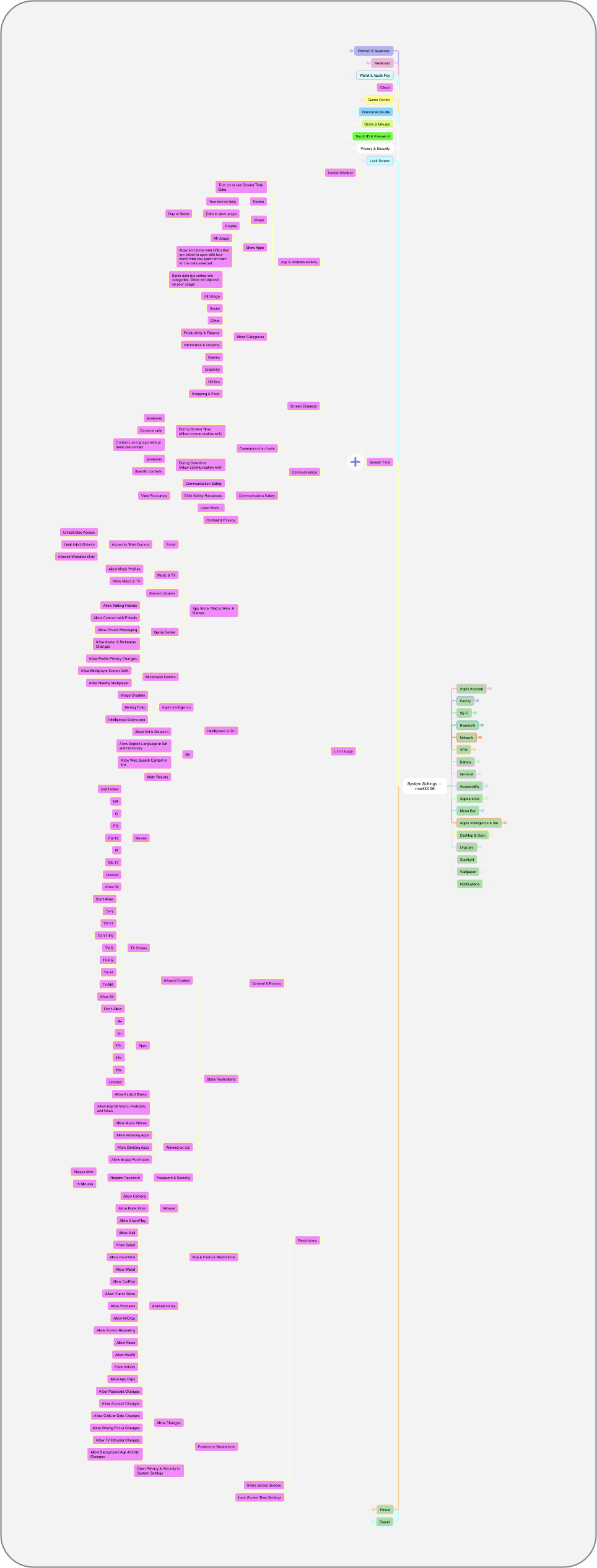 Oops! I did it again. I have mind-mapped every single element in all of macOS 26 (Tahoe) System Settings! I give you two links: The first is a permanent page to use the mind map to search for settings and then figure out where Apple has buried them. The second is a post on "how I did this crazy thing and why". Because of the size and complexity, I could not have published the mind map in a usable form without the genius of @ttscoff!