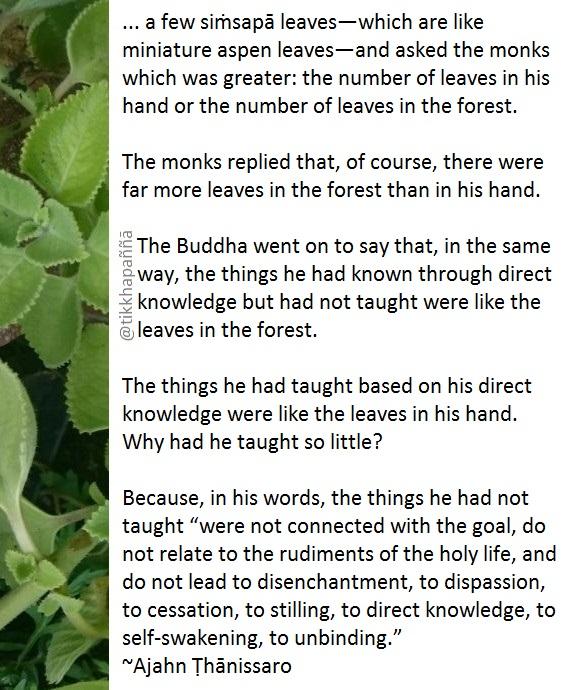 The Buddha was once staying in a siṁsapā forest with a group of monks. He picked up ...
