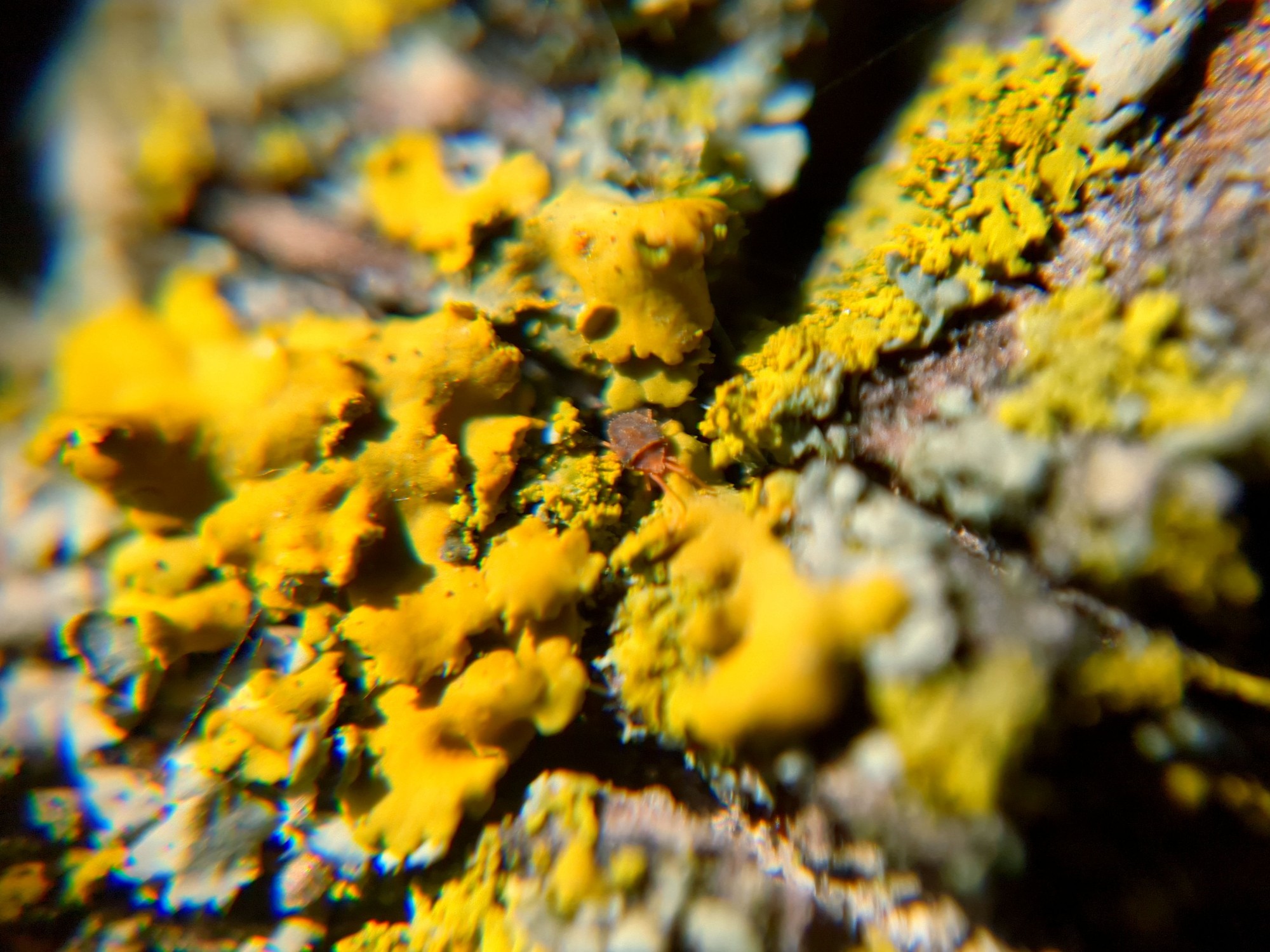 #Arachtober 28: clover mite (_Bryobia_) in a bright patch of lichen.