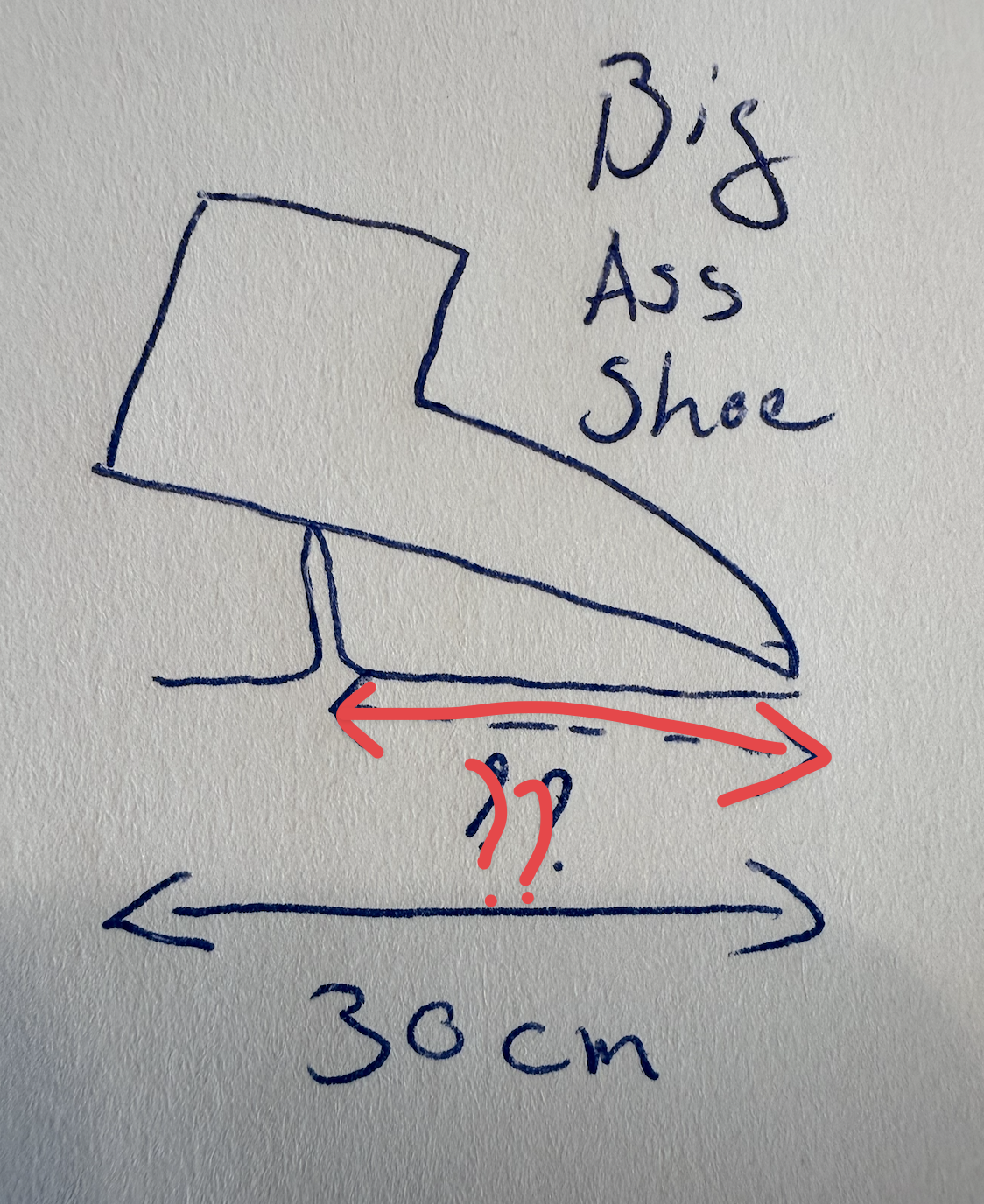 I am trying to do trigonometry to see whether my big ass shoes fit and need a measurement IKEA doesnt give. Specifically, the distance to the elevation vertical (see picture)