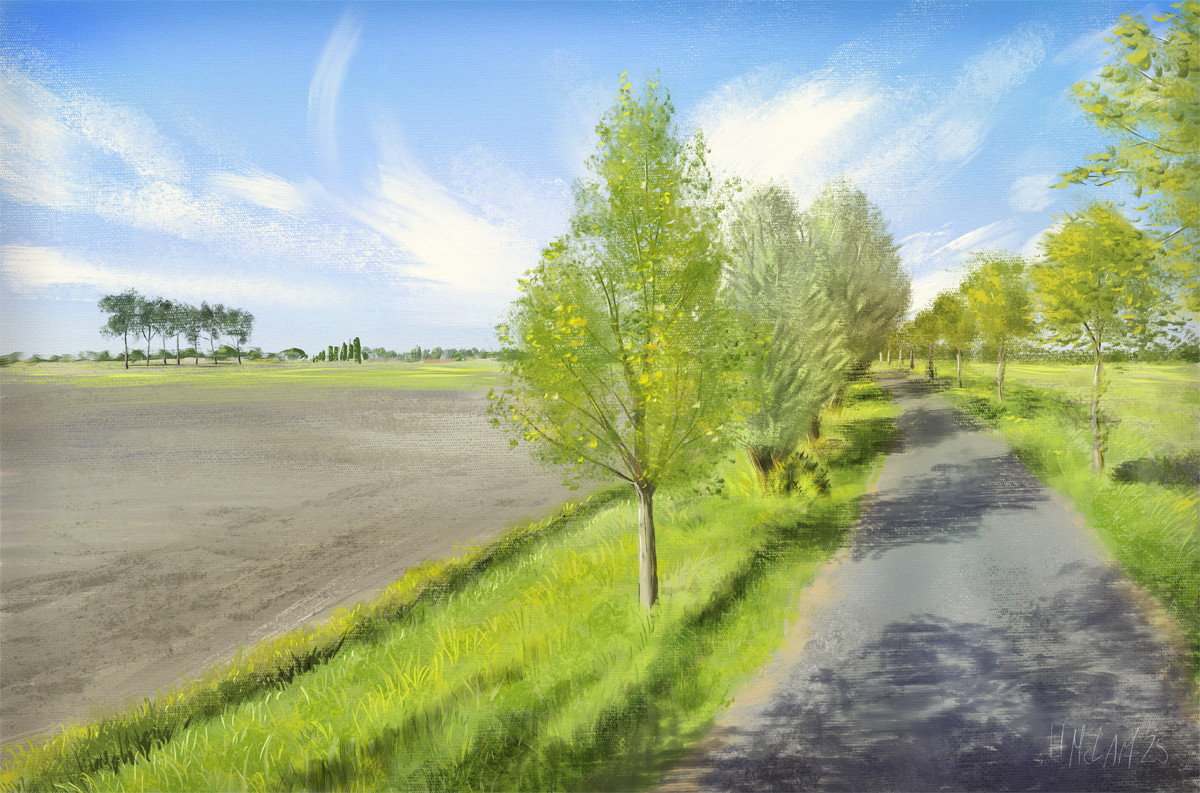 A much quicker study in Rebelle, trying some virtual plein air. I picked this scene in the Netherlands on street view for some landscape practice.