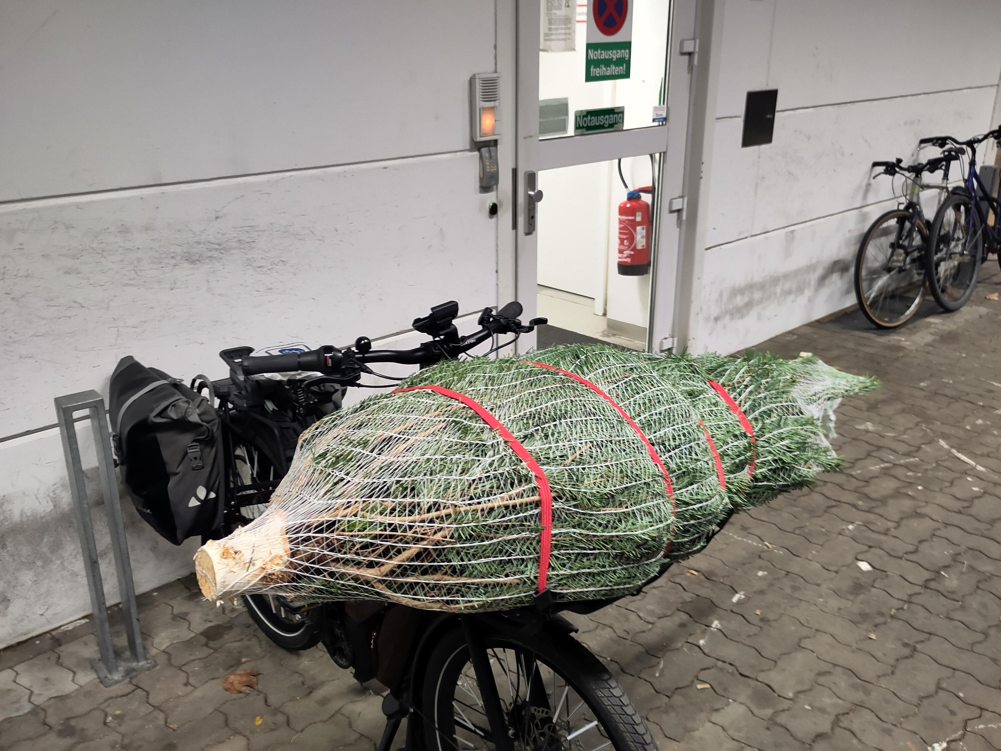 Gestern musste das Lasten-Bergamont meiner Frau für den Weihnachtsbaum-Transport einspringen, da mein Cargowagen Neo mit Kettenriss in der Werkstatt ist...