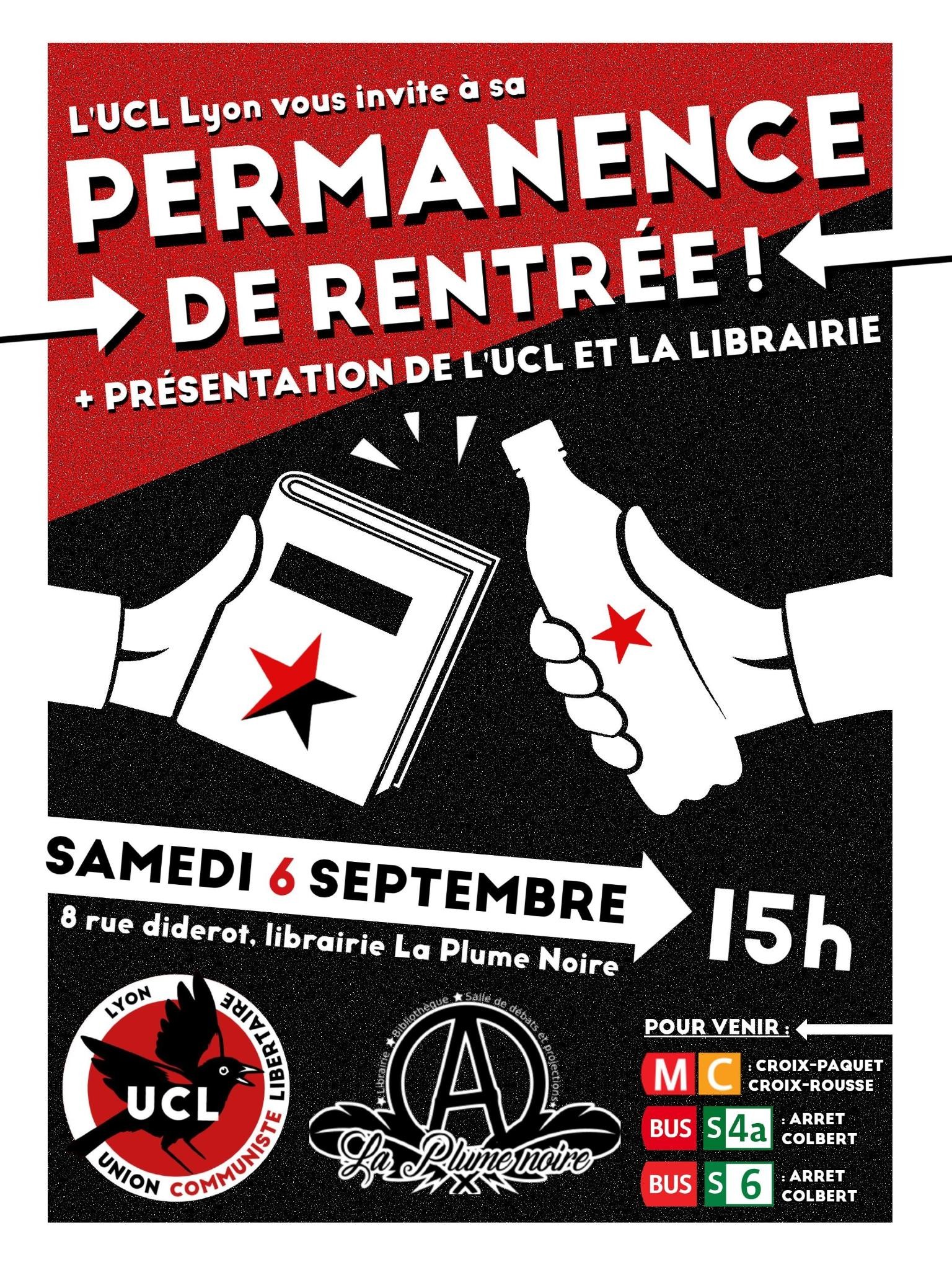 🦁 L' #UCL#Lyon ouvre sa permanence hebdomadaire de notre librairie La Plume Noire samedi 6 Septembre. Venez chercher de la documentation, des livres, boire un coup, parler avec nous ! 😊