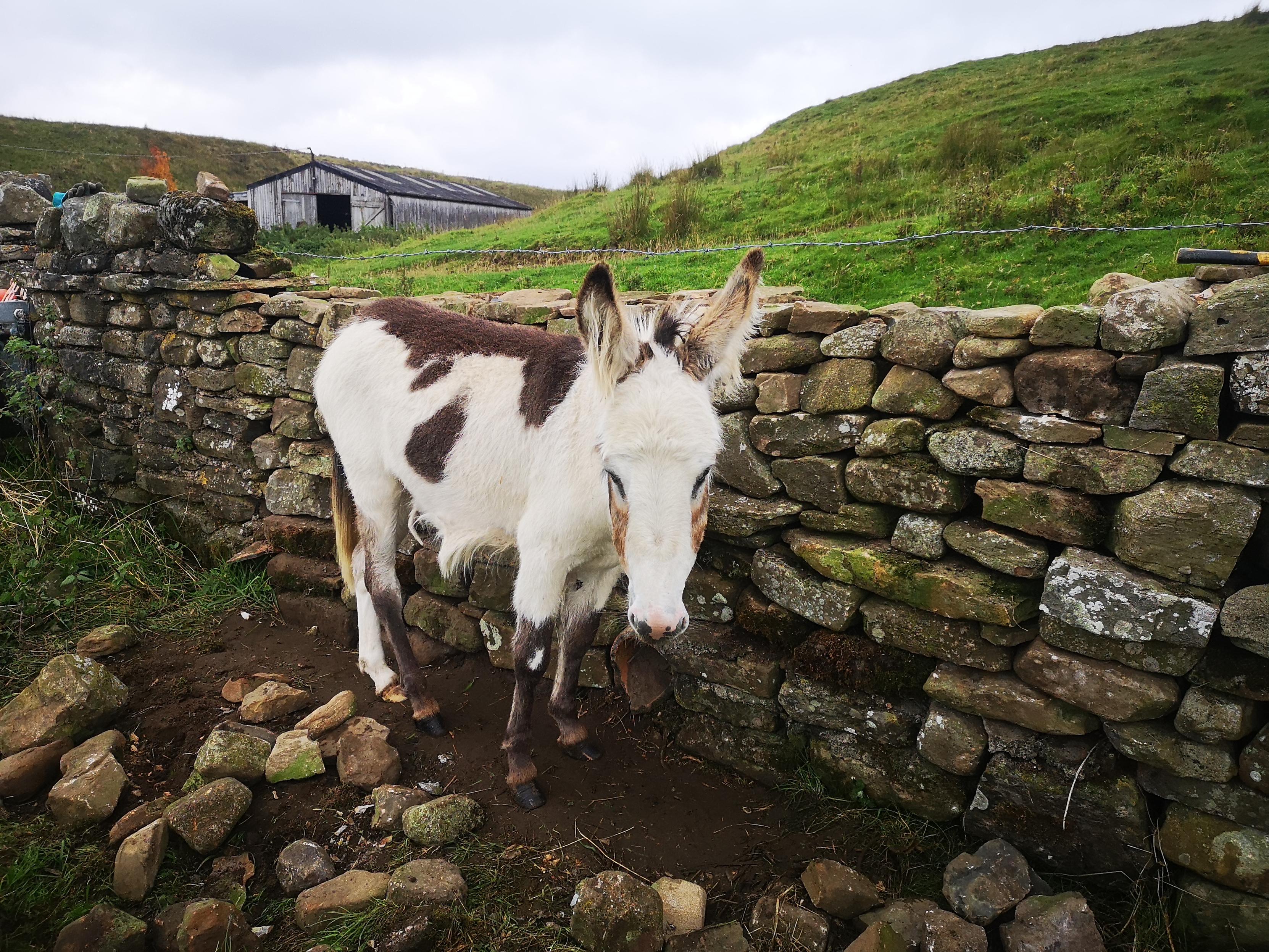 Beck Foot, where I'm repairing a wall, have two adult donkeys and two youngsters. One of the youngsters came over and I made the mistake of giving it a scratch on the neck.