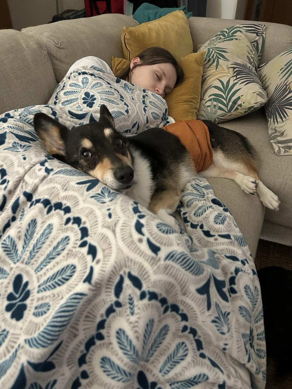 My girl traveled to visit me and my honey in our new home over the New Year holiday. No one was happier to see her than her dog. 🥰 #corgi #FediDogs #DogsOfMastodon #CorgiCrew #Dogs #Pets