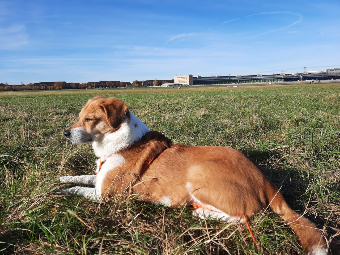 Again my orange and white furry friend lying down on Tempelhof Feld