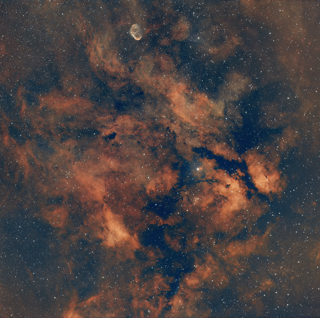L'estrela Sadr ( صدر, pit, en àrab) en la constel·lació de Cygnus, una regió de grans nebuloses d'emissió difuses. Imatge creada amb 125 captures de 3 minuts amb un Samyang 135mm F2.8 en un cel Bortle8 #HortaSud #València #Astronomia