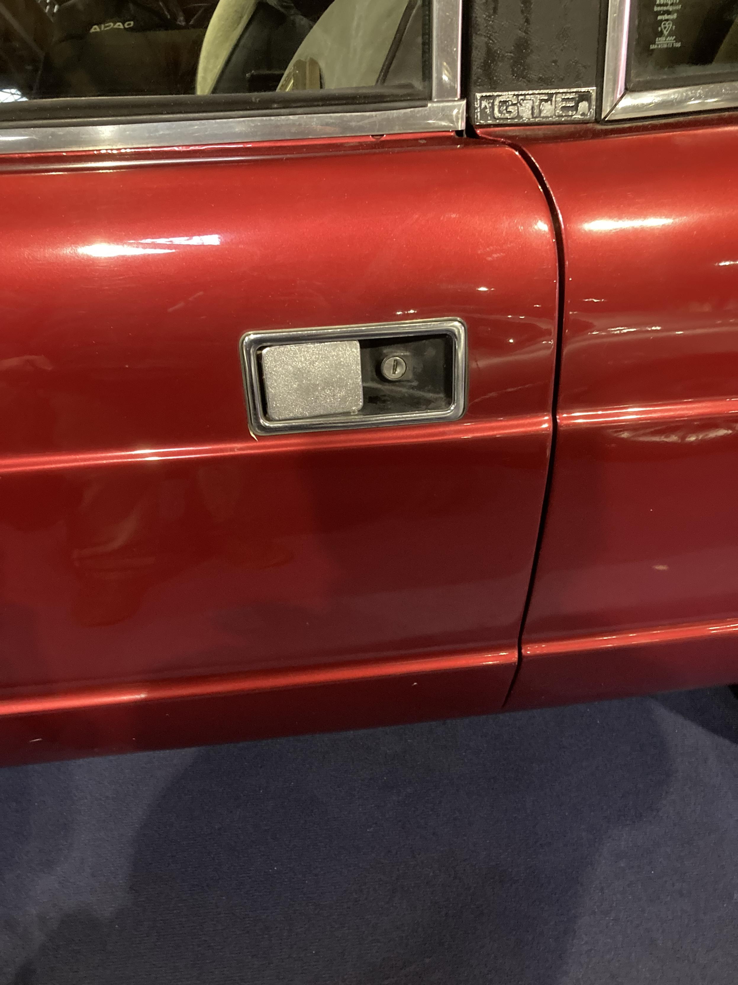 Today, we’re lingering on the subject of the Morris Marina door handles with this example of the Reliant Scimitar, which I saw at last weekend’s NEC Classic Motor Show. When the revamped SE6 version of the Scimitar was introduced in 1975, it received important upgrades such as a lengthened wheelbase for more interior space and also, like yesterday’s Lotus Eclat, Marina door handles.