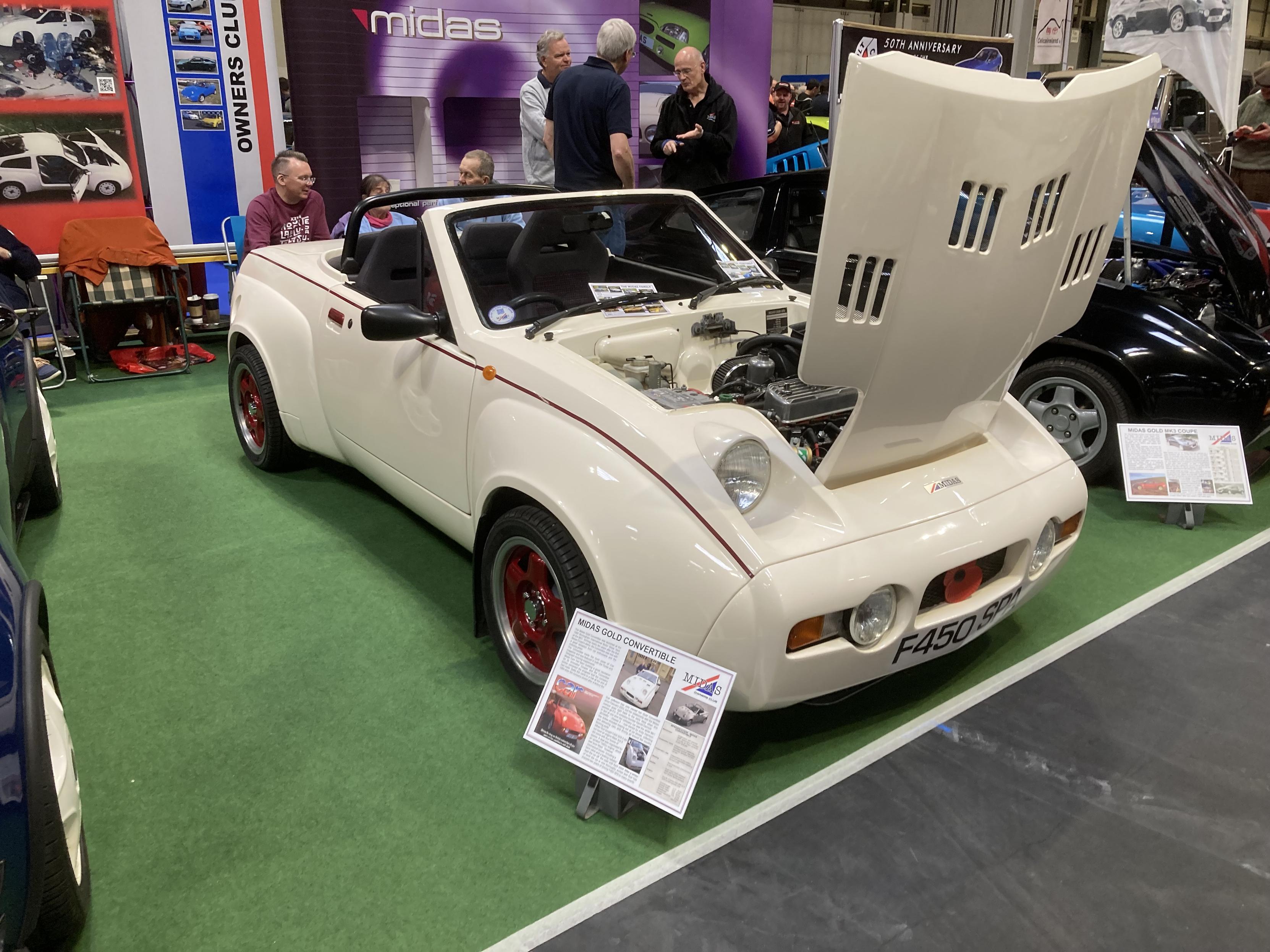 One last Midas from the recent NEC Classic Motor Show - the Midas Gold convertible. I’ve posted a similar car before - see below - but I think this lighter colour shows off its contours better. (1/2)