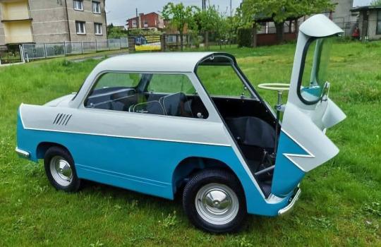 Smyk Prototype, 1957. A Polish microcar prototype developed at the Automotive Industry Design Office in Warsaw, notable for its front-opening “door”. It lost out in a government competition to become Poland's official affordable mass-produced car. Just 17 units were made. The name "Smyk" is a Polish term for a "little kid". Source, carsthatnevermadeitetc.tumblr.com #weirdcarmastodon #poland #prototype
