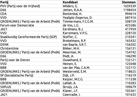 Dit zijn alle kandidaten met meer dan 100.000 stemmen.