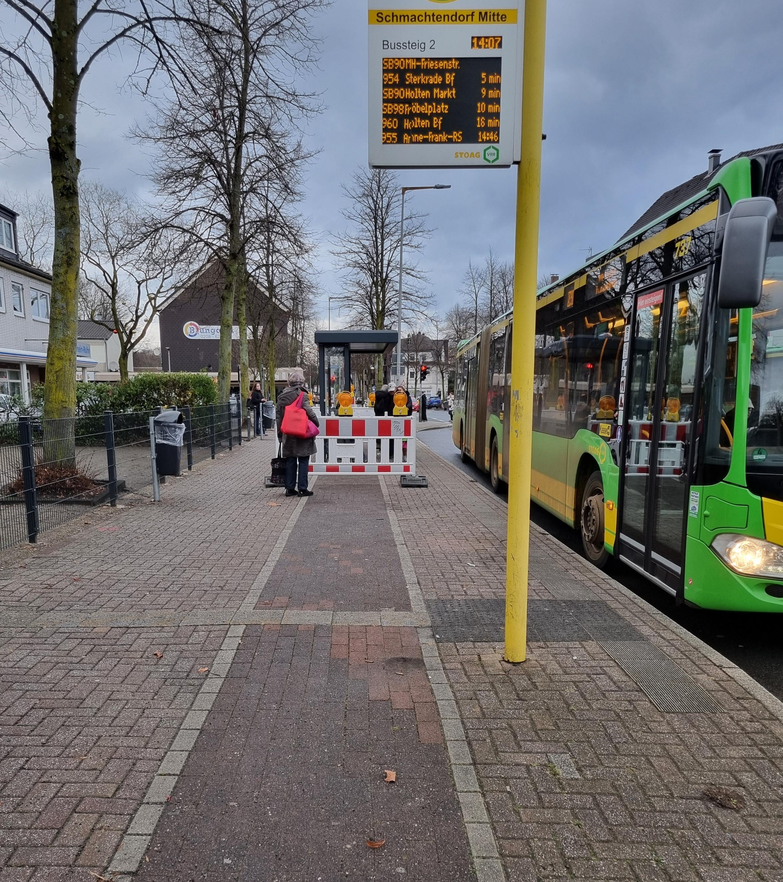 Große Aufregung in #Oberhausen-Schmachtendorf weil dort aufgrund von Versorgungsleitungen im Boden ein Wartehäuschen mitten auf den nur 1,20 m breiten, nicht benutzungspflichtigen baulichen Radweg gebaut wurde.