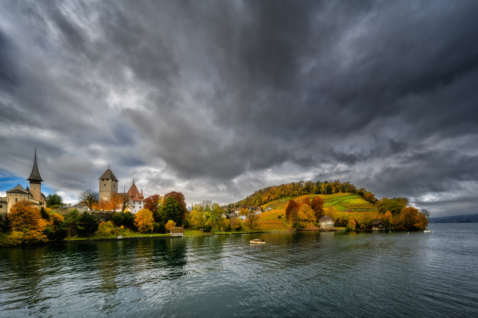 #hess_photography #photography #fotografie #landscapephotography #landschaftsfotografie #BernerOberland #castle #church #clouds #KantonBern #lake #LakeThun #Rebberg #Schweiz #Spiez #Thunersee #vineyard #weather