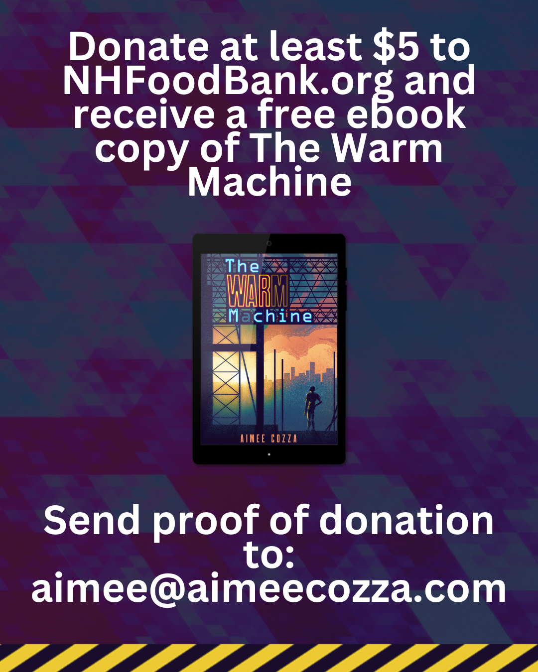 Wanna get some cool books for FREE? Make a $5 (or more) donation to NHFoodBank.org and then send me the receipt and I'll send you a copy of The Warm Machine!