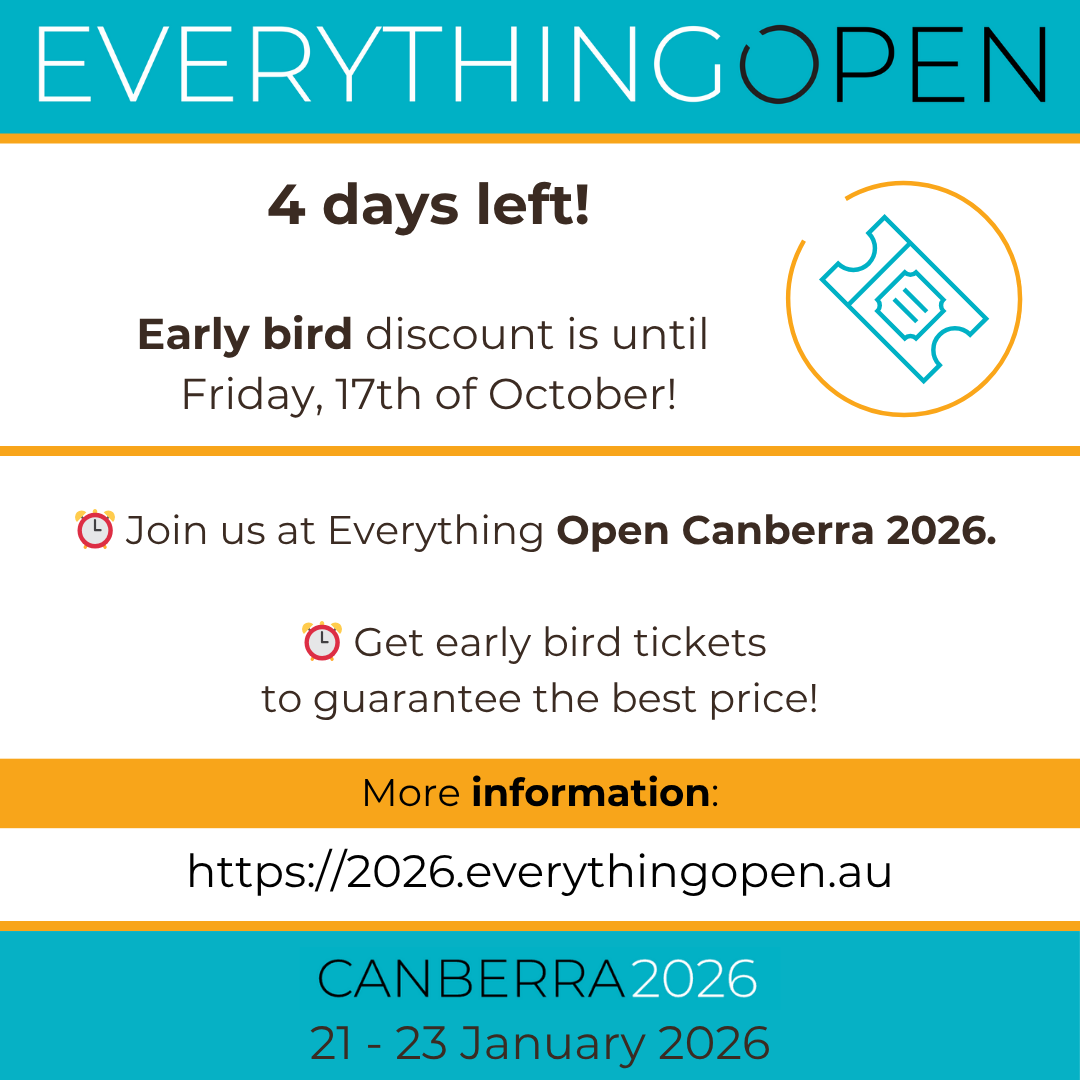 ⏰ Come and share with us at #EverythingOpen Canberra 2026.