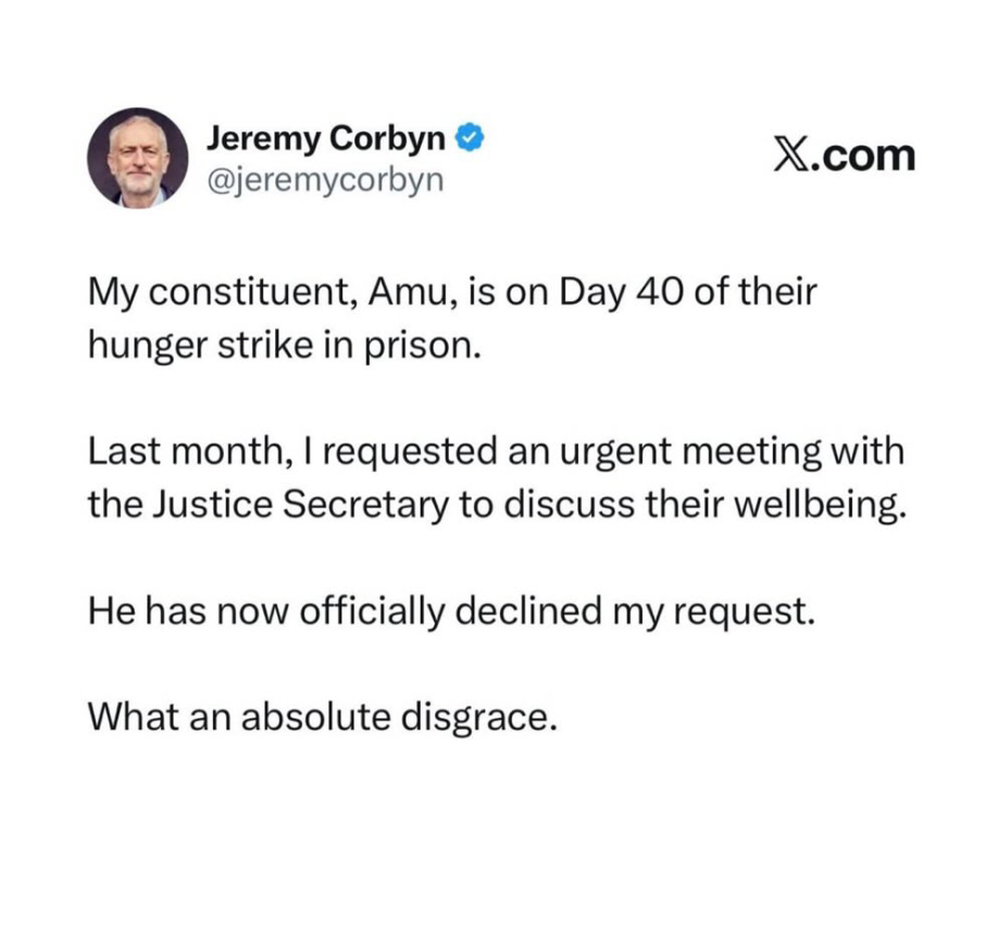 Letting prisoners die of hunger is not a new tactic for the UK. They let Bobby Sands and other Irish prisoners of war starve to death in 1980-81. The difference between then and now is that then the government at least was open to dialog with the hunger strikers. Justice Minister David Lammy has refused all requests by the activists' lawyers and family to even meet them.