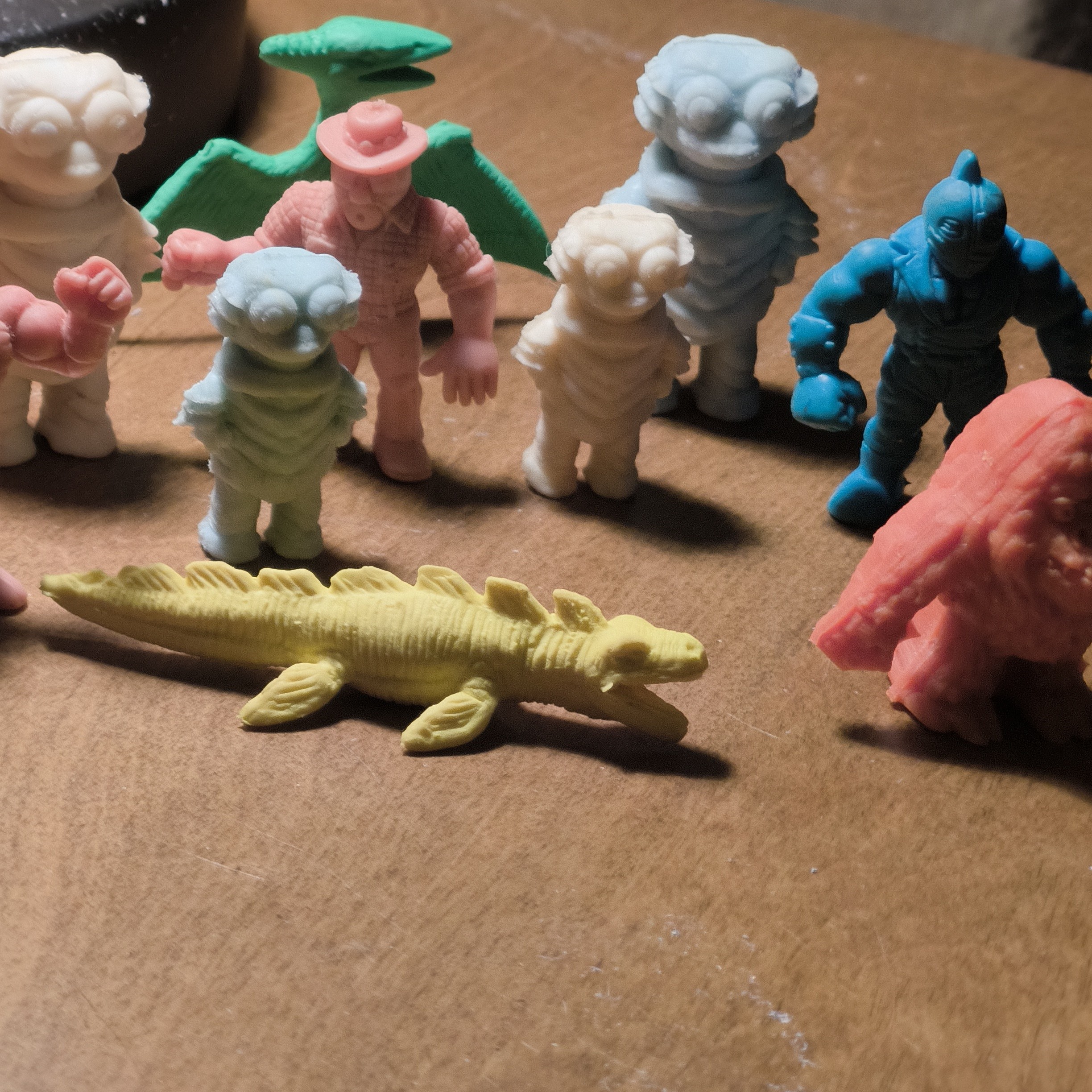 I have Sky Pirates, I have monsters, I have hand made jointed action figures, I have keshi, I have stickers, I have gameboy games, I have comic books, and I have magazines.