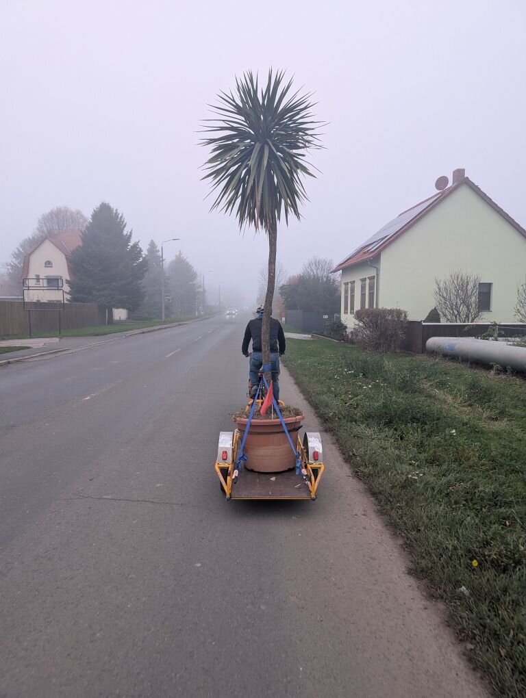 Decided on an experiment if I can do the yearly migration of the cabbage tree palm from the front yard in its winter location at the @bytespeicher foyer across town with a bike instead of a rental van.