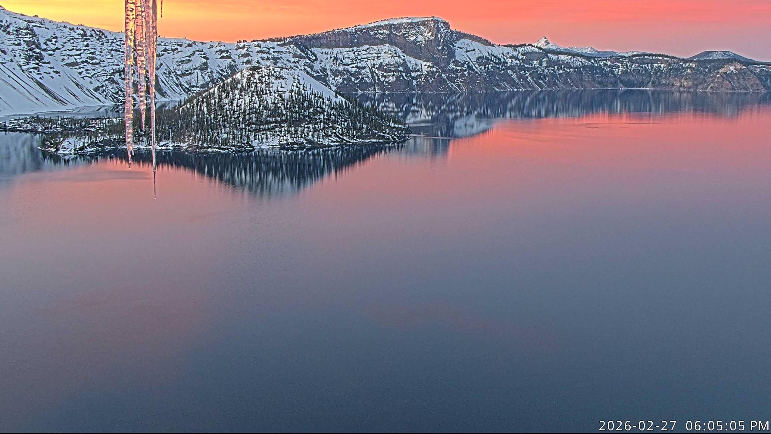 Sunset, Crater Lake National Park tonight (Crater Lake from Sinnott Overlook). Learn more at https://www.nps.gov/crla/index.htm and #nps #nationalparks #interpretation #publiclands #photography #landscapephotography #craterlake Image credit National Park Service #orwx #oregon #snow #winter #travel #lake #geology #reflection #icicle #sunset #color