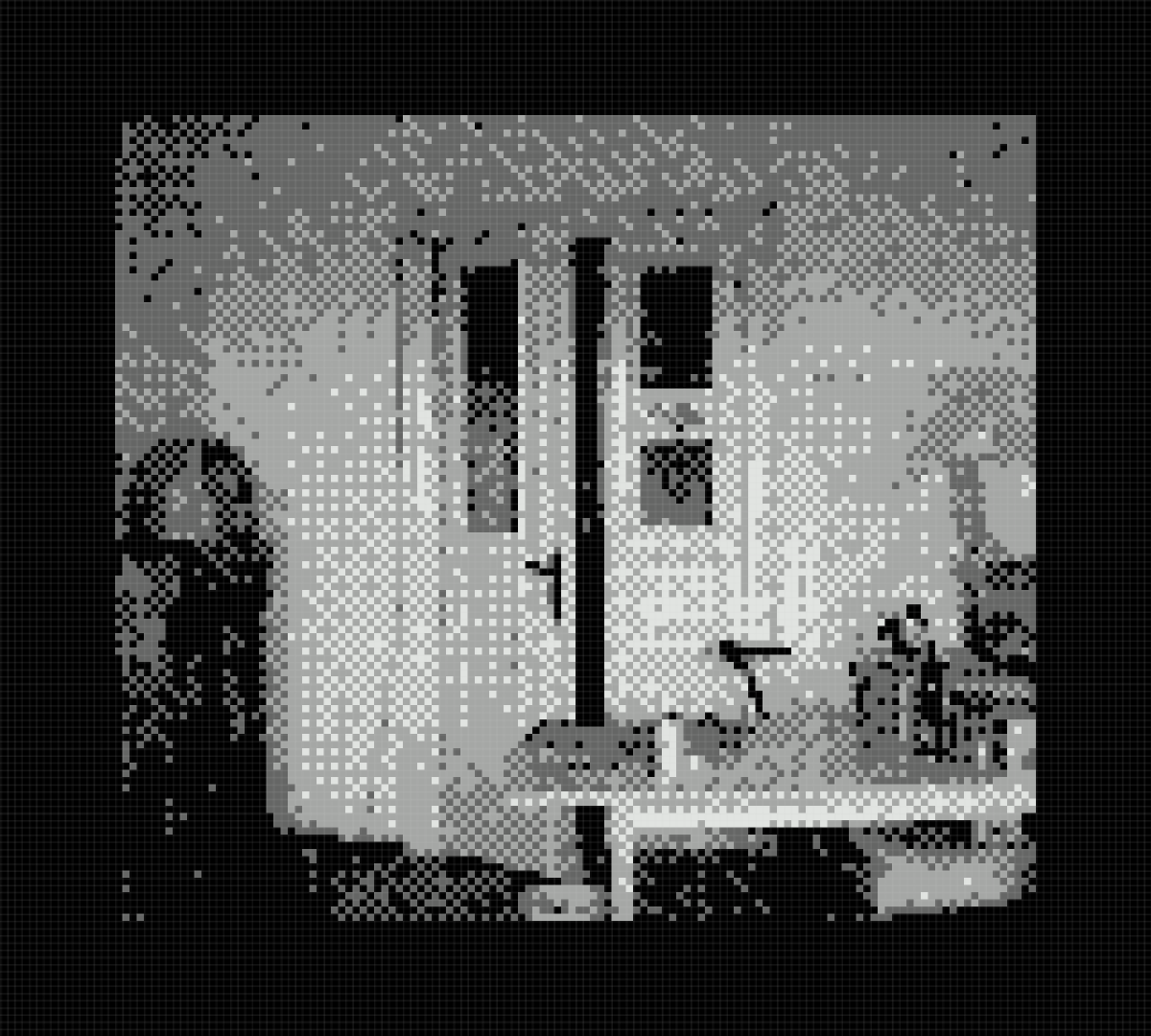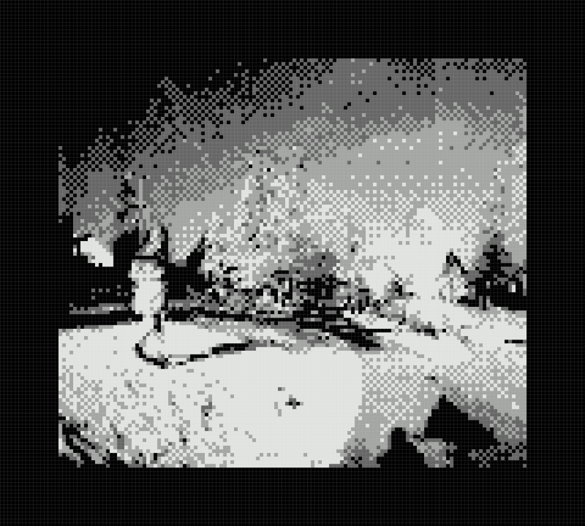 Can’t make out much in this photo, but it shows a street corner in the town where we live, on a snowy and sunny day. #GameBoyCamera