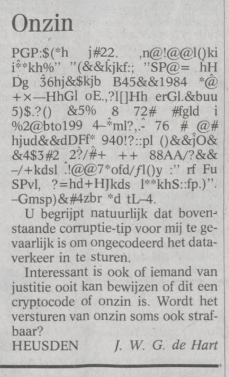 Bijdrage aan het encryptiedebat in Nederland van 1994: