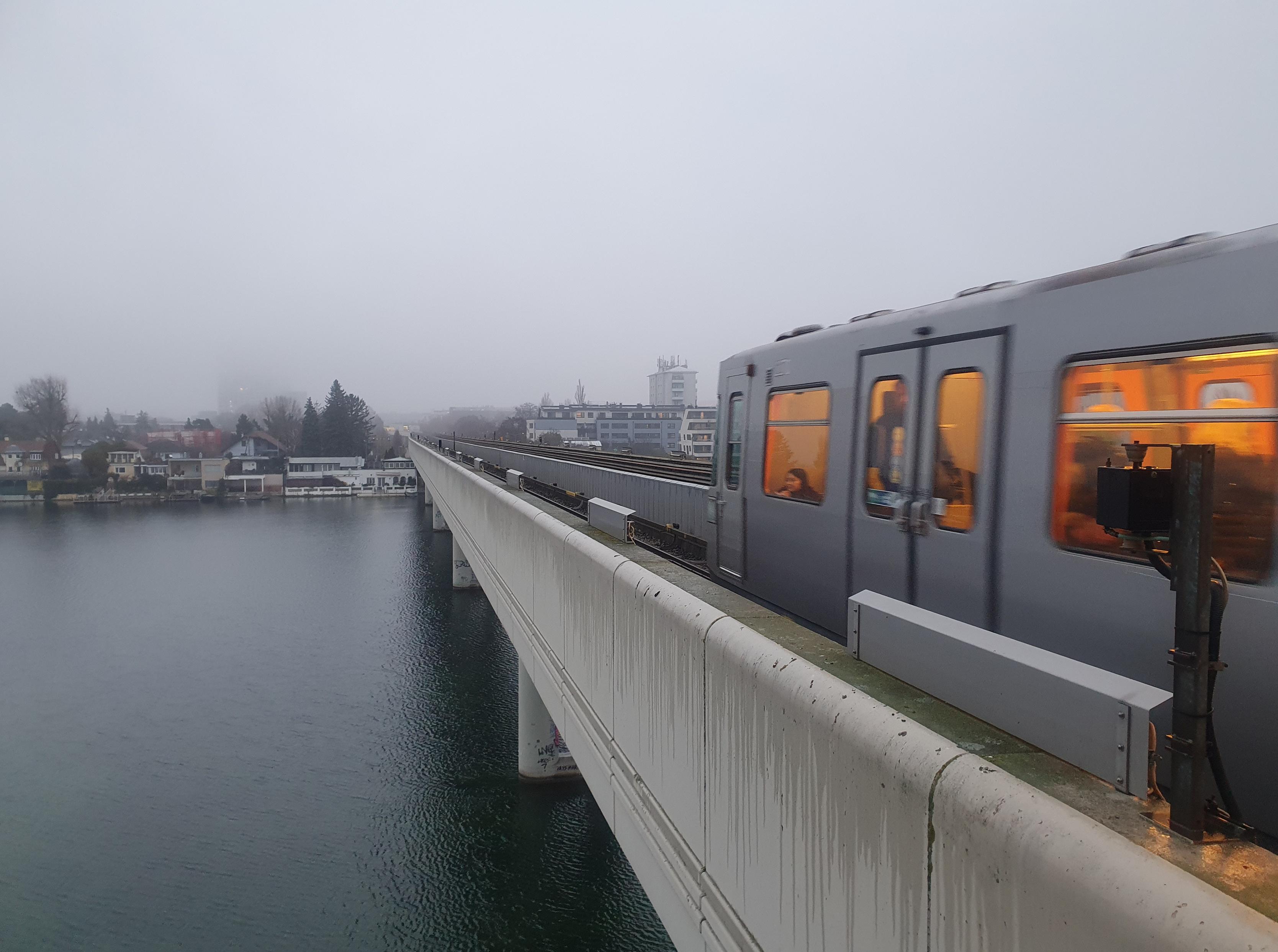 It was wonderful to run on the frozen Old Danube in Vienna today. I followed all the branches in the lower part. Especially when you are familiar with swimming there, it is an astonishing experience to simply run on the water.