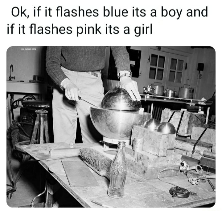 Ok, if it flashes blue its a boy and if it flashes pink its a girl and there's a picture of the demon core below