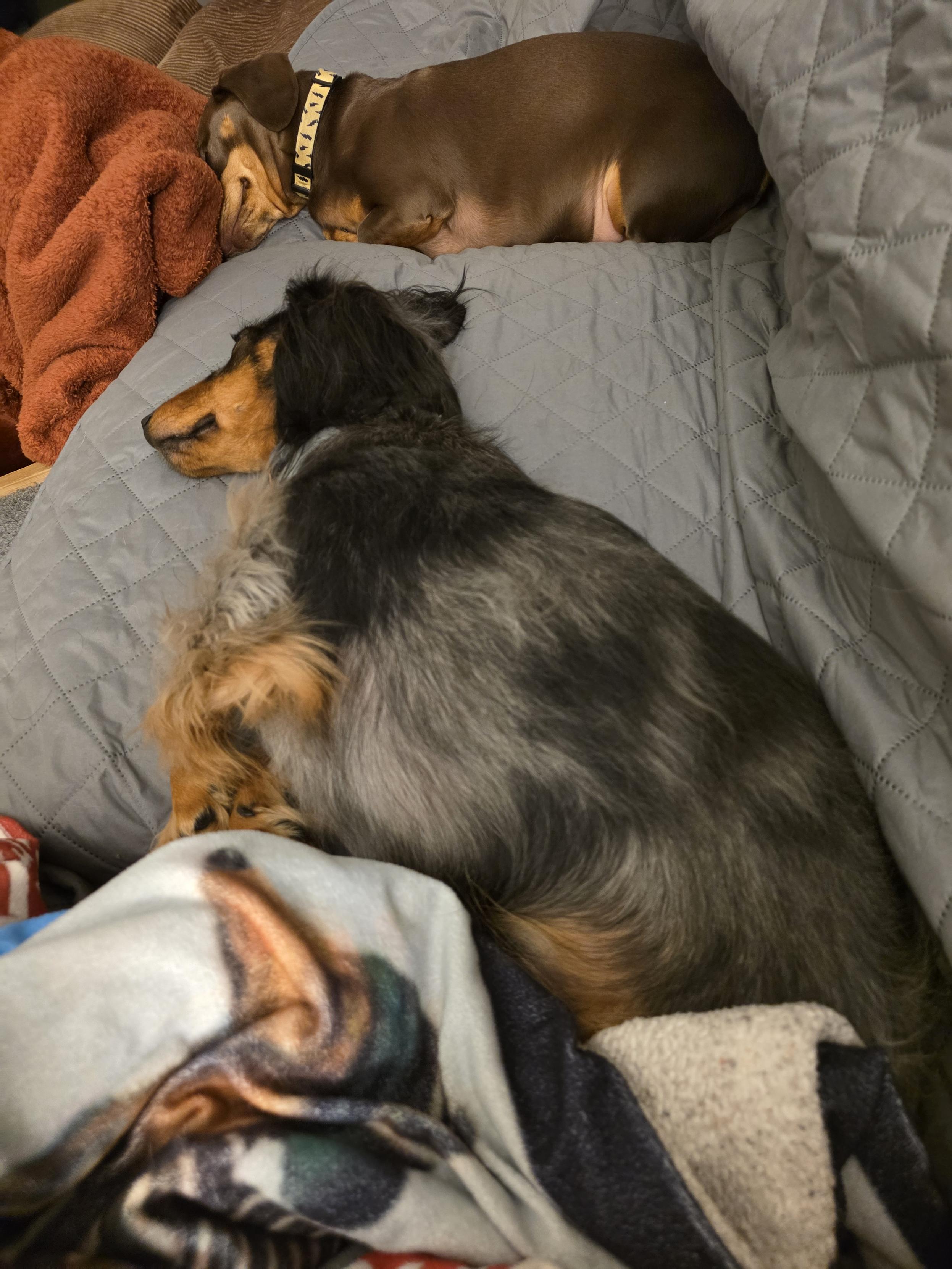 Double comfort. #Dachshund #DogsOfMastodon #Dogs