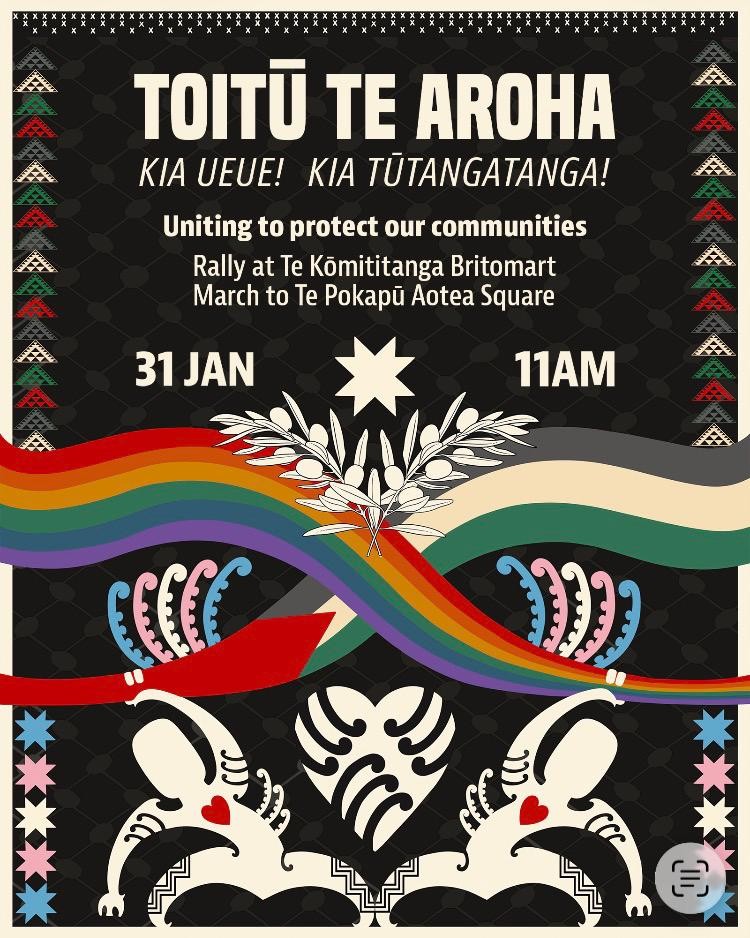 Join us tomorrow Saturday 31st of January at Te Komititanga, Waitematā Train station (previously Britomart) for Toitū Te Aroha, an event organised to bring communities together in solidarity and response to increasingly emboldened hate peddlers. ✊🏼🌱