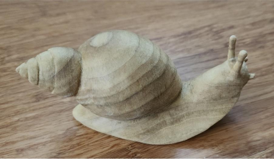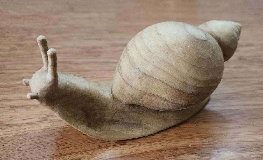 My attempt at a snail, carved in lime wood, I think. Inspired by lissachatina fulica, the giant African land snail. #woodcarving #mollusc
