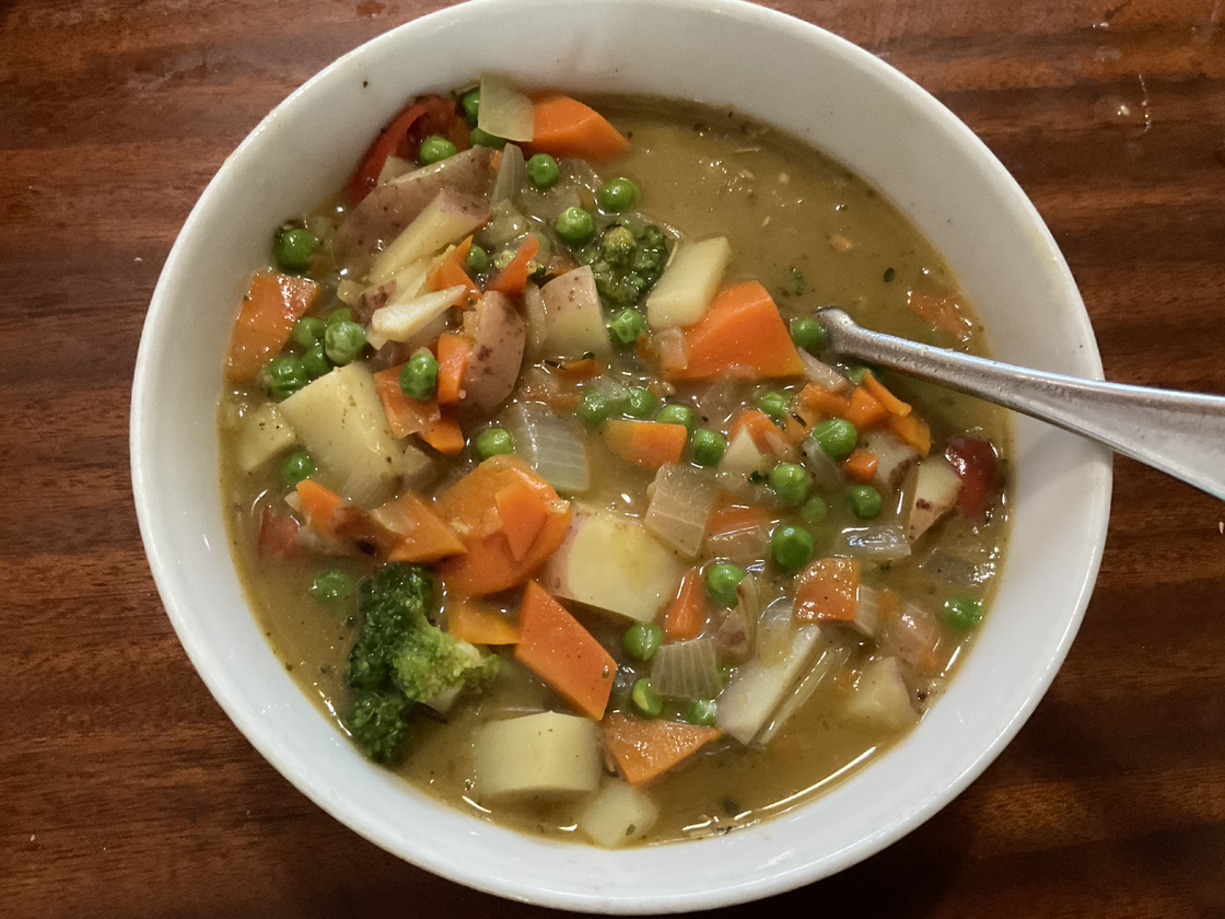 Tomato-Zucchini-Ginger #soup with Tofu blocks and bread. Freshly made in the pressure cooker and it smells delicious 😃