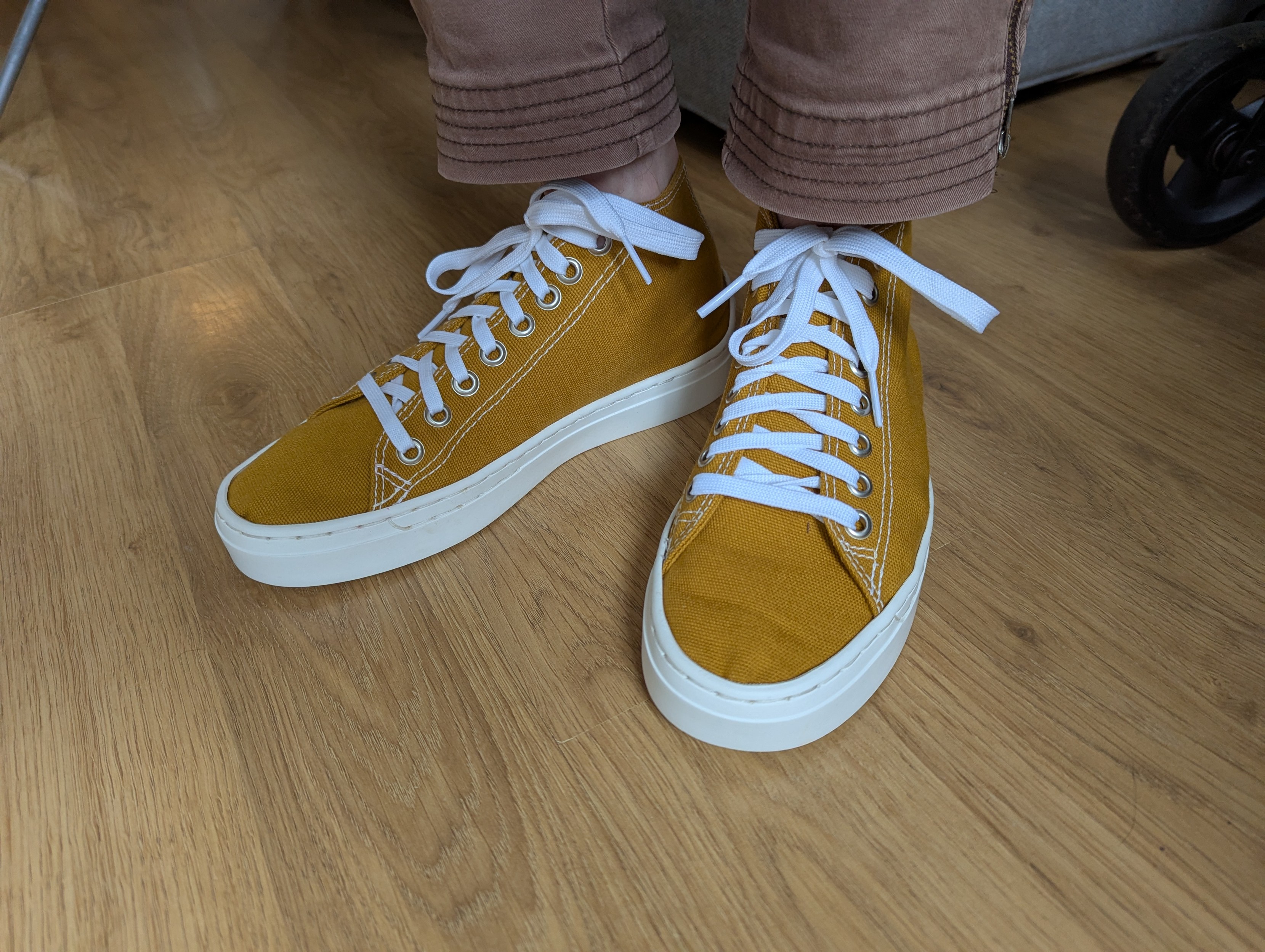 Video of Aylan sitting legs crossed in the tent. In front of her, a pair of pink sandals. Aylan is saying: "I need new shoes" and as she emphasizes on the last word, she shows her broken sandals.