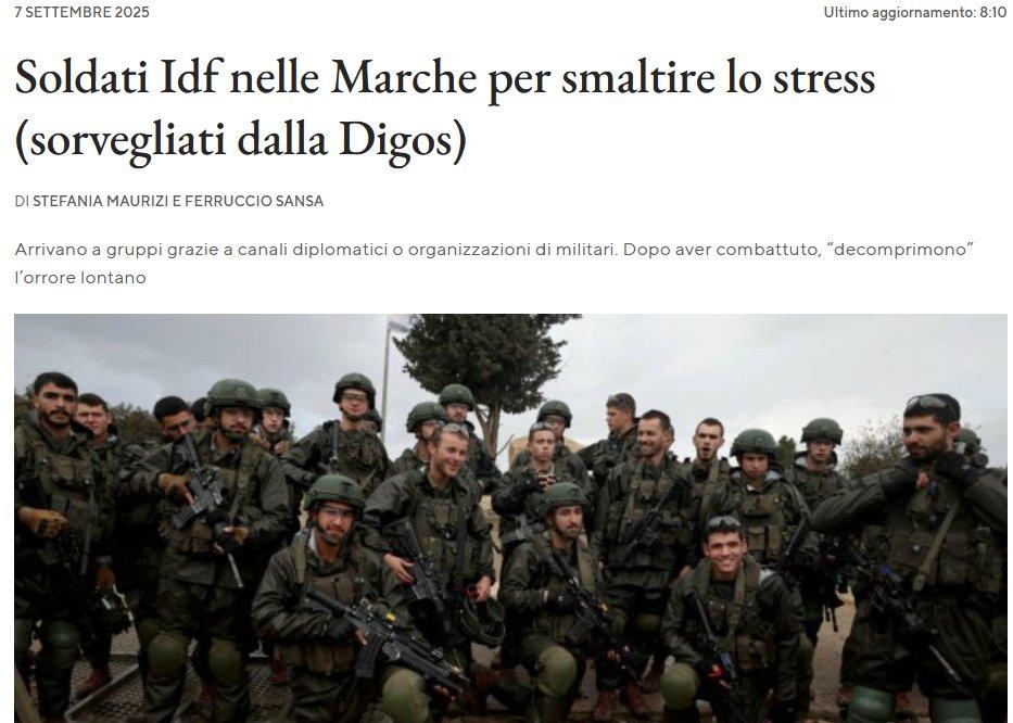 comunque queste rivelazioni su #soldatiIDF in #DecompressionePsicologica in Italia, sotto copertura di turisti,protetti dalla #DIGOS, dimostra ancora una volta, perché c'è bisogno di un giornale libero come #IlFattoQuotidiano