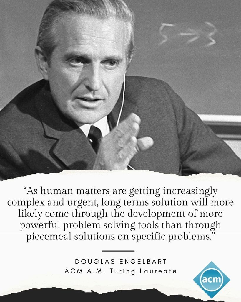 Today in 1925, #ACMTuringAward recipient Douglas Engelbart was born. Engelbart received the Turing Award in 1997 for his inspiring vision of the future of interactive computing and the invention of key technologies to help realize this vision. https://amturing.acm.org/award_winners/engelbart_5078811.cfm