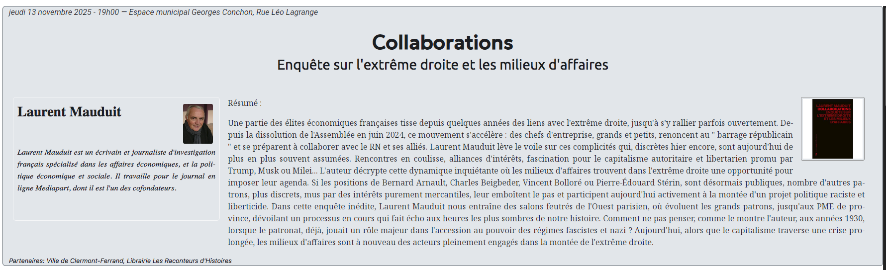 Laurent MAUDUIT ” Collaborations : enquête sur l’extréme droite et les milieux d’affaires”