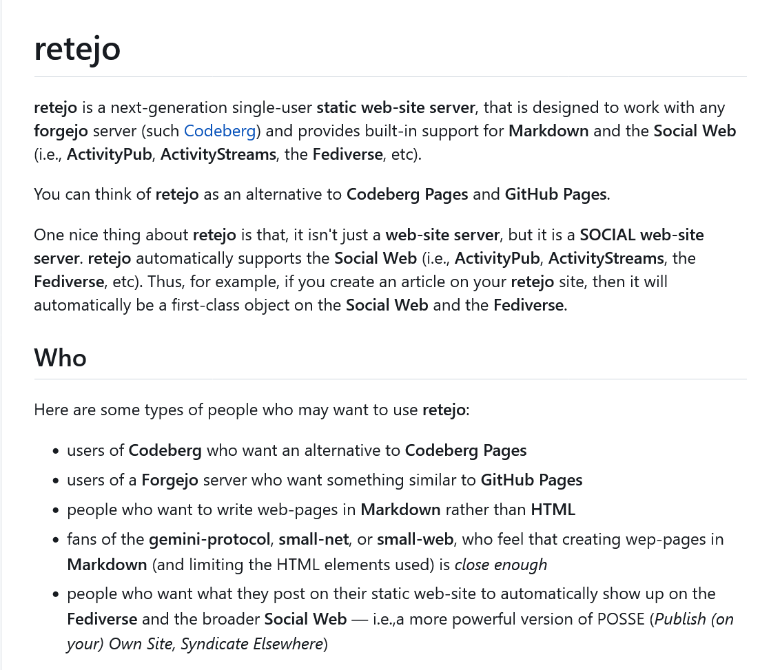 #ActivityPub#ActivityStreams #codeberg #forgejo#GeminiProtocol #gitea #markdown #retejo#SmallNet #SmallWeb#StaticSite#StaticWeb#StaticWebSite