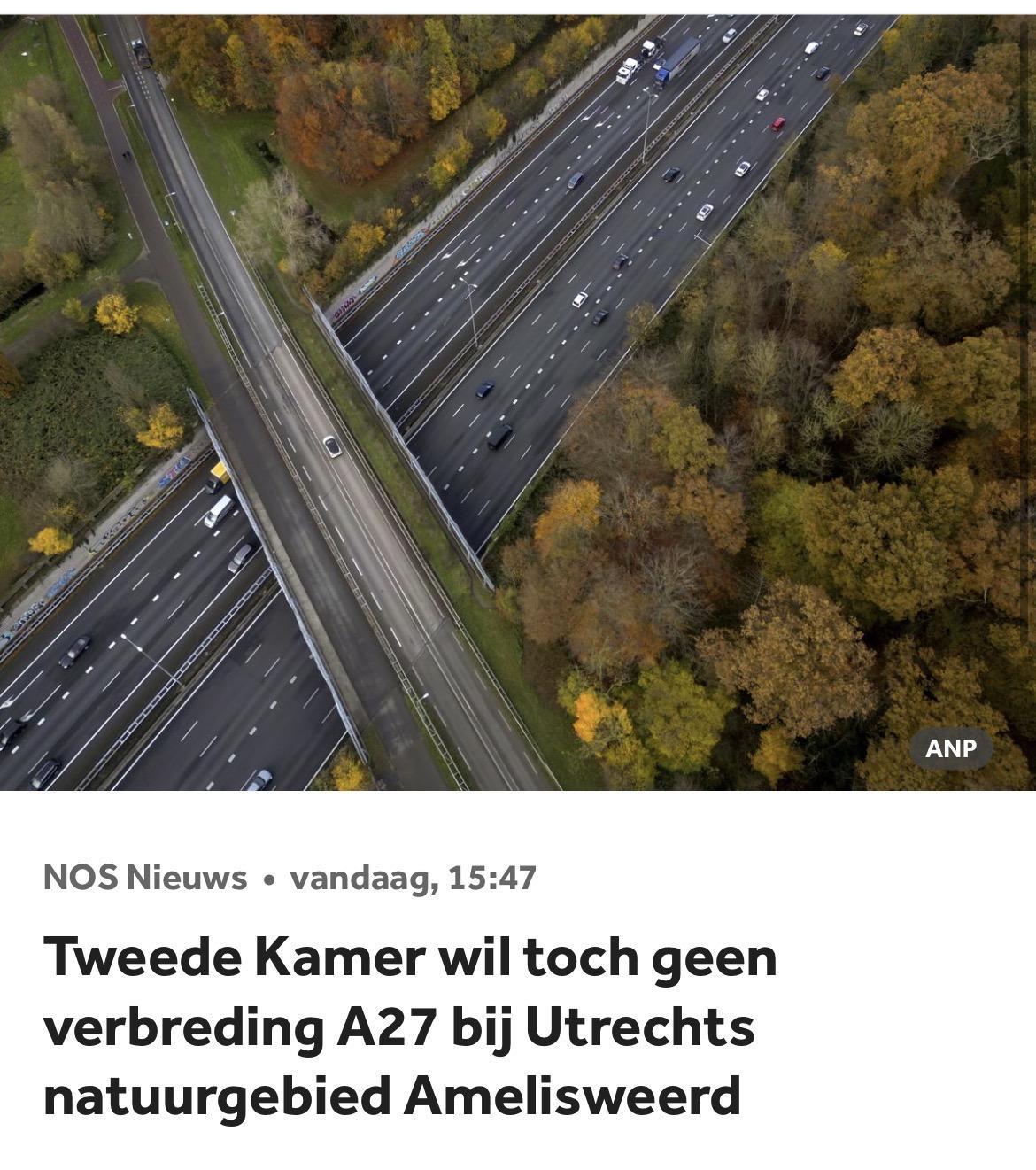Nu echt! De verbreding van de A27 bij Amelisweerd is nu eindelijk echt naar de prullenbak verwezen! Niet omdat de nieuwe coalitie de natuur wil beschermen maar vanwege het geld. Maar linksom of rechtsom: wij zijn blij!