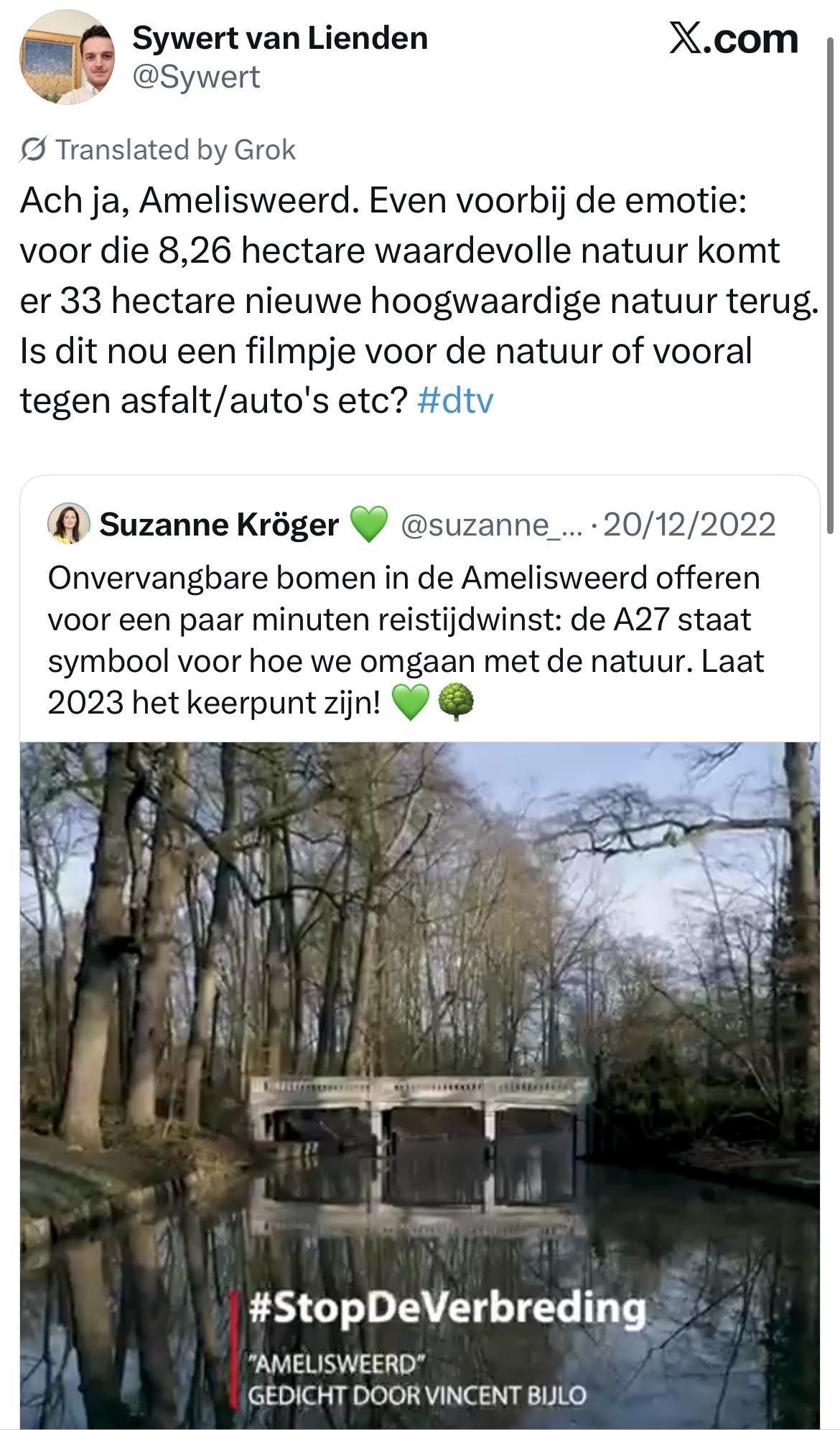Als het gaat om Amelisweerd kijken wij met gemengde gevoelens naar deze verkiezingsuitslag. Het aantal zetels van de partijen die tegen verbreding van de A27 zijn, is gelukkig met 9 toegenomen. Dank aan degenen die gekozen hebben voor Amelisweerd❤️! En succes aan de Kamerleden! Maar de voorstanders van de verbreding hebben ook 1 zetel erbij. Het hangt nu vooral af van CDA en BBB.