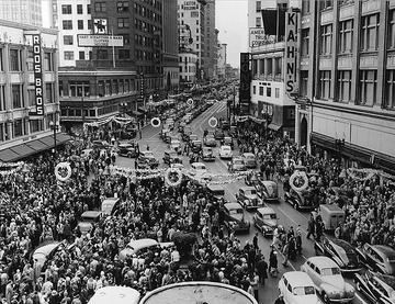 Today in Labor History December 3, 1946: Women retail clerks at Hastings and Kahn’s launched the Oakland General Strike, the last General Strike to occur in the U.S. Other workers soon joined in. Overall, more than 100,000 workers participated in the 3-day Oakland General Strike, which was part of the 1945-1946 strike wave, the largest strike wave in US history. Over 5 million workers participated in the nationwide strike wave, including 225,000 UAW members, 174,000 electric workers struck, 750,000 steel workers, 250,000 railroad workers. There were several other General Strikes in 1946, too, including Lancaster, PA; Stamford, CT; Rochester, NY. In reaction to this strike wave, Congress passed the Taft-Hartley Act in 1947, which severely restricted the powers and activities of unions. It also banned General Strikes, stripping away the most powerful tool workers had.