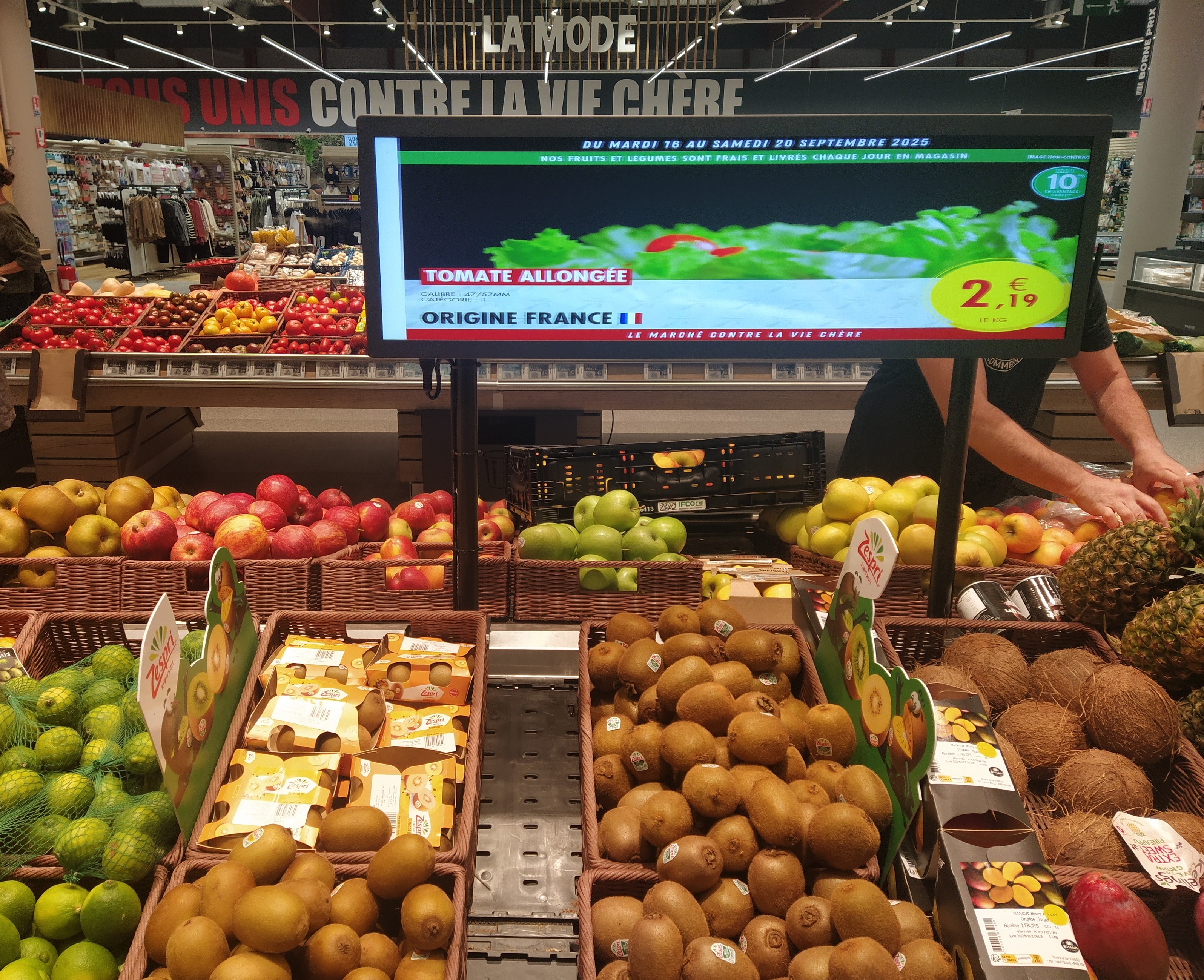 Purin y'a un fucking ÉCRAN maintenant dans le rayon des fruits et légumes.