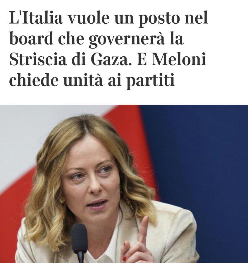 "Italy wants a place on the board that will govern the Gaza Strip. And Meloni calls for unity from all parties."